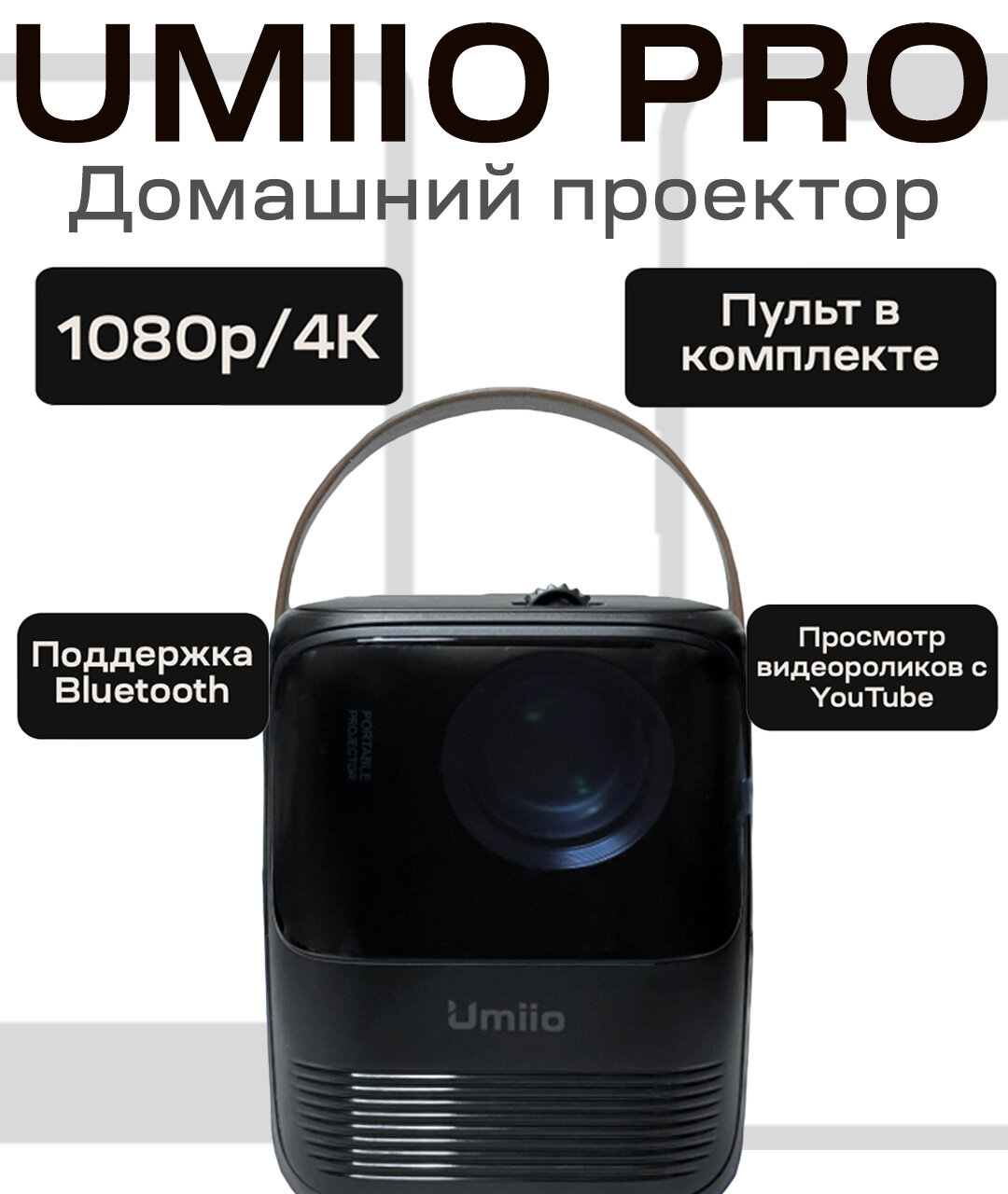 Портативный проектор Umiio для фильмов, YouTube. Черный