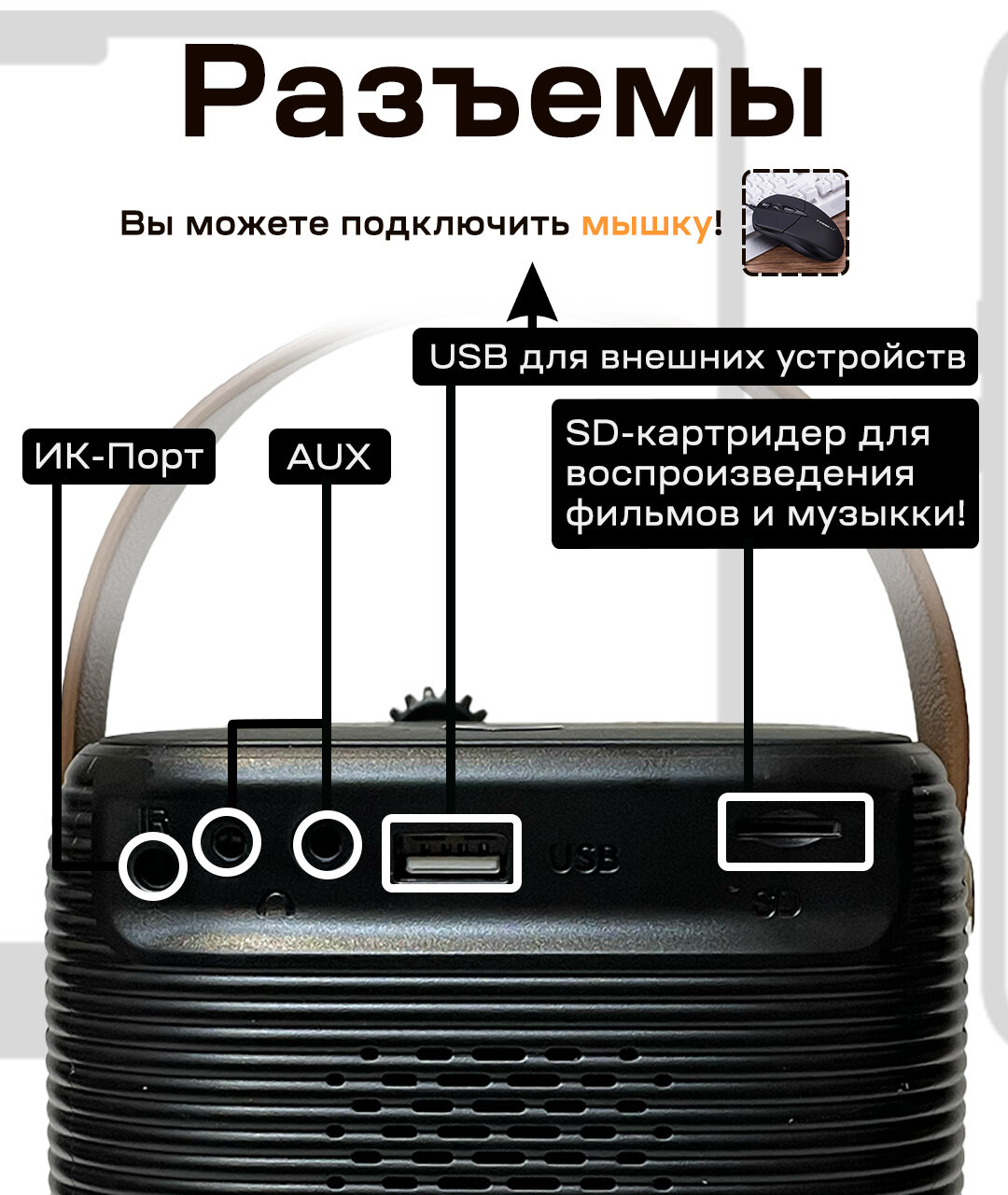 СохранитьПортативный проектор Umiio А008 Pro для фильмов, YouTube. Черный интересное: