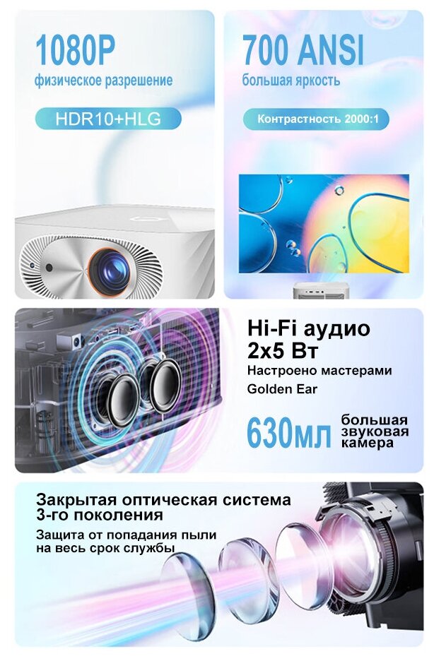 Проектор Lenovo Xiaoxin 100 (Android, 1080p, 700 ANSI, Русская прошивка) интересное: