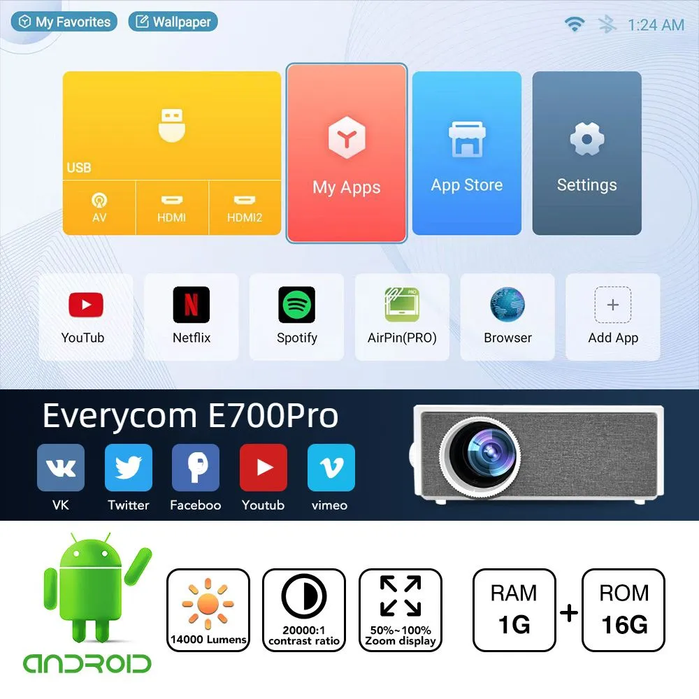 Проектор Everycom E700 PRO 1080P (Alincoo E700 PRO. 14000 люмен) интересное: