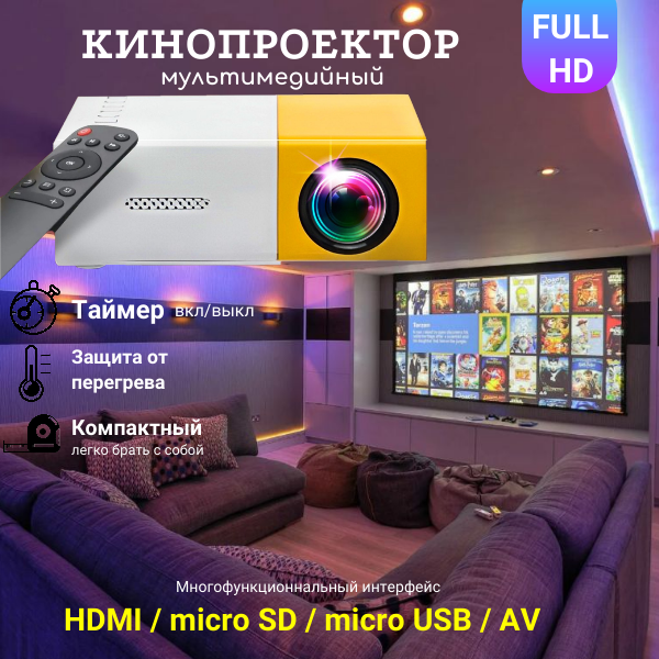 Кинопроектор мультимедийный UNIC мини YG-300 Проектор светодиодный для просмотра фильмов Домашний кинотеатр интересное: