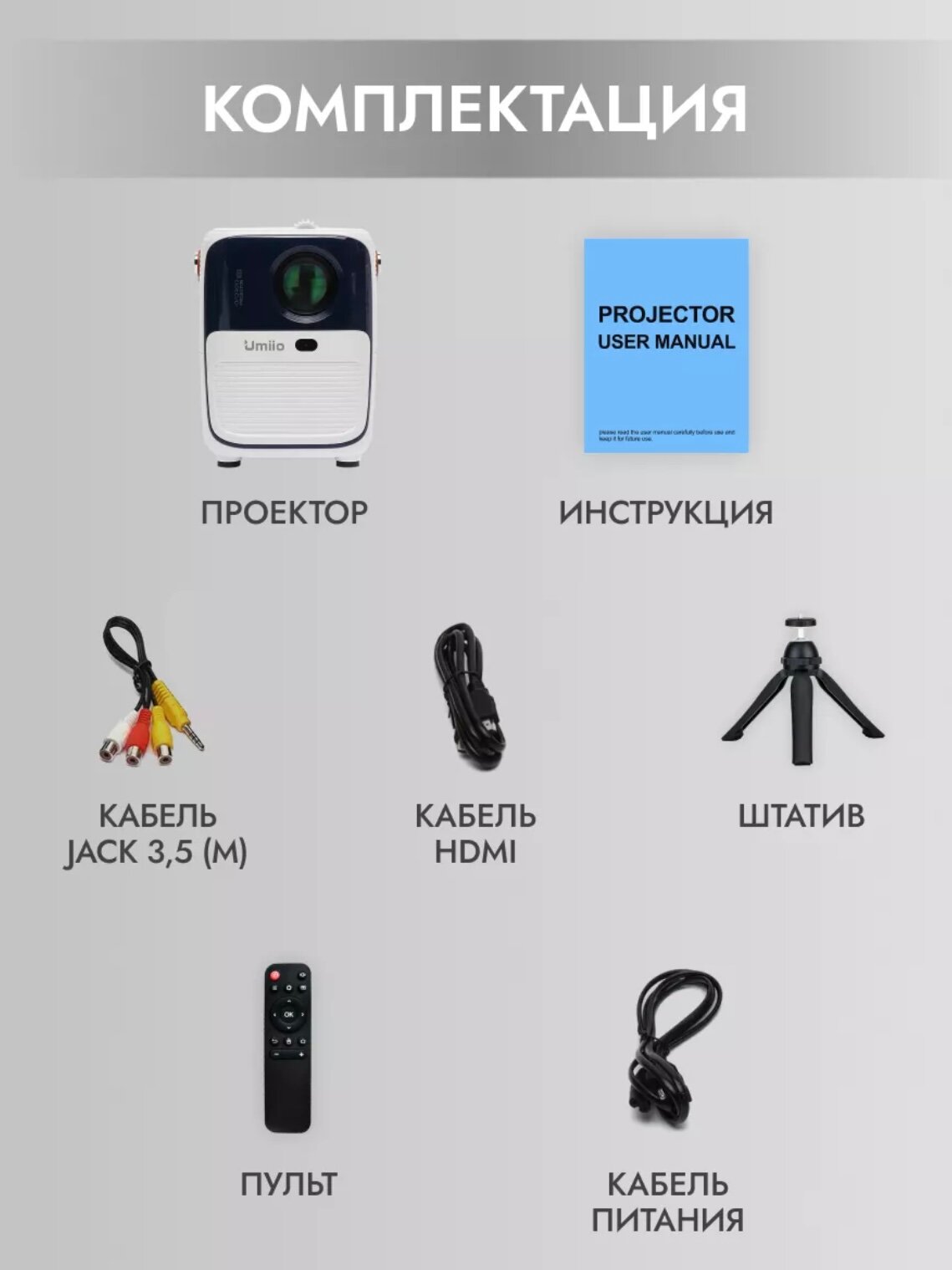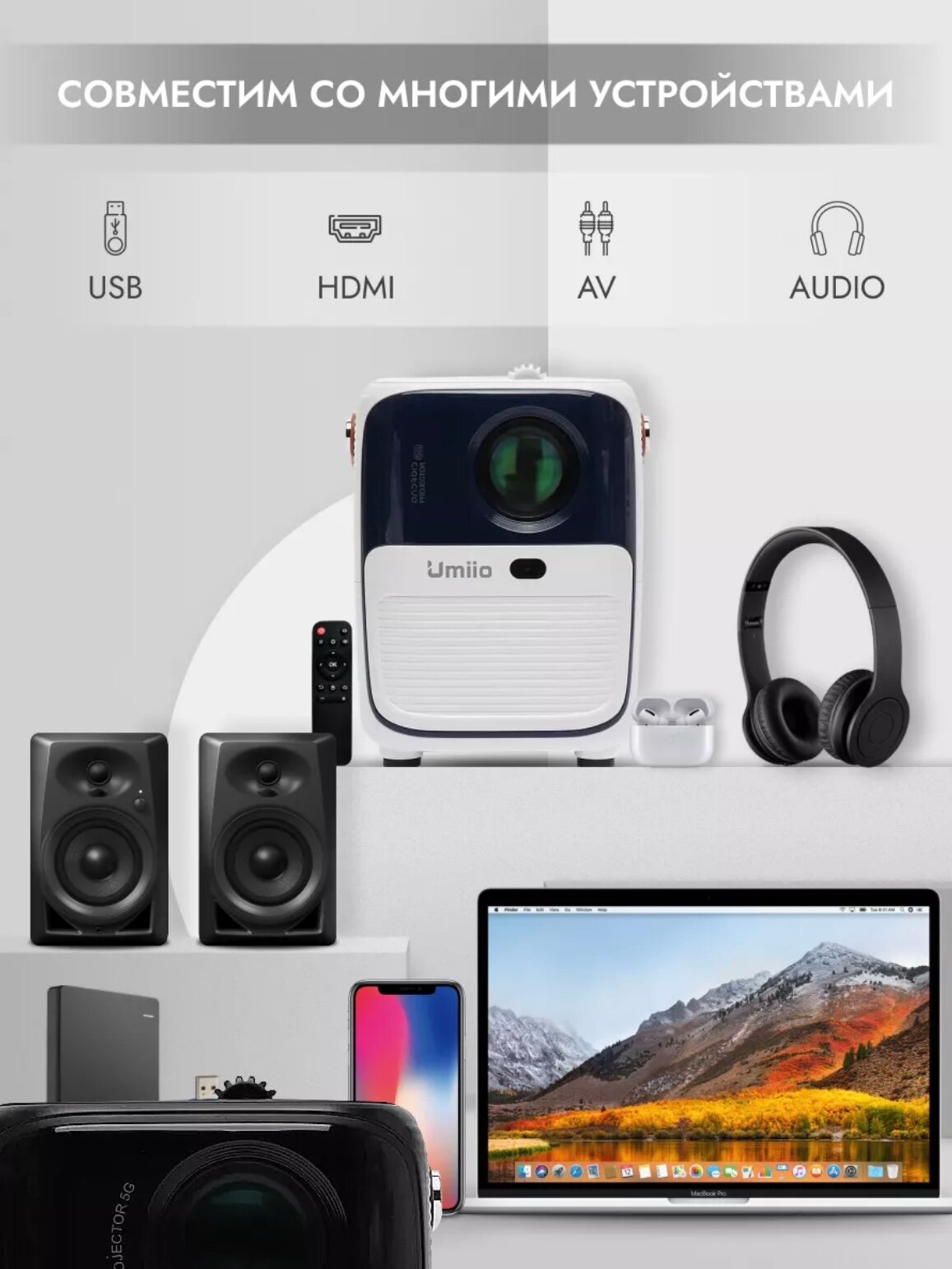 Проектор Umiio Q2 для фильмов мини проектор домашний с HDMI / Белый интересное: