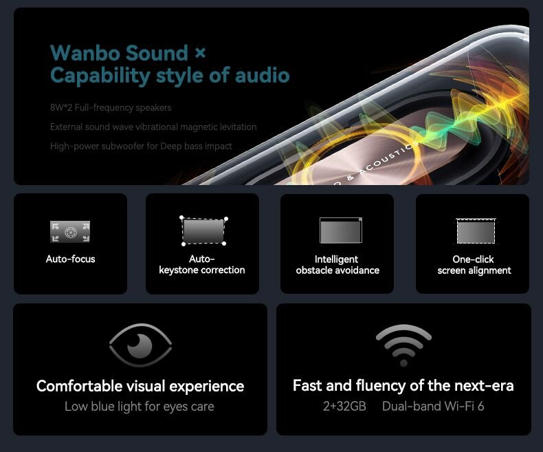Проектор Wanbo Mozart 1 Blue (1920*1080/2+32G/Android 9/900 ANSI/Auto-Focus) интересное: