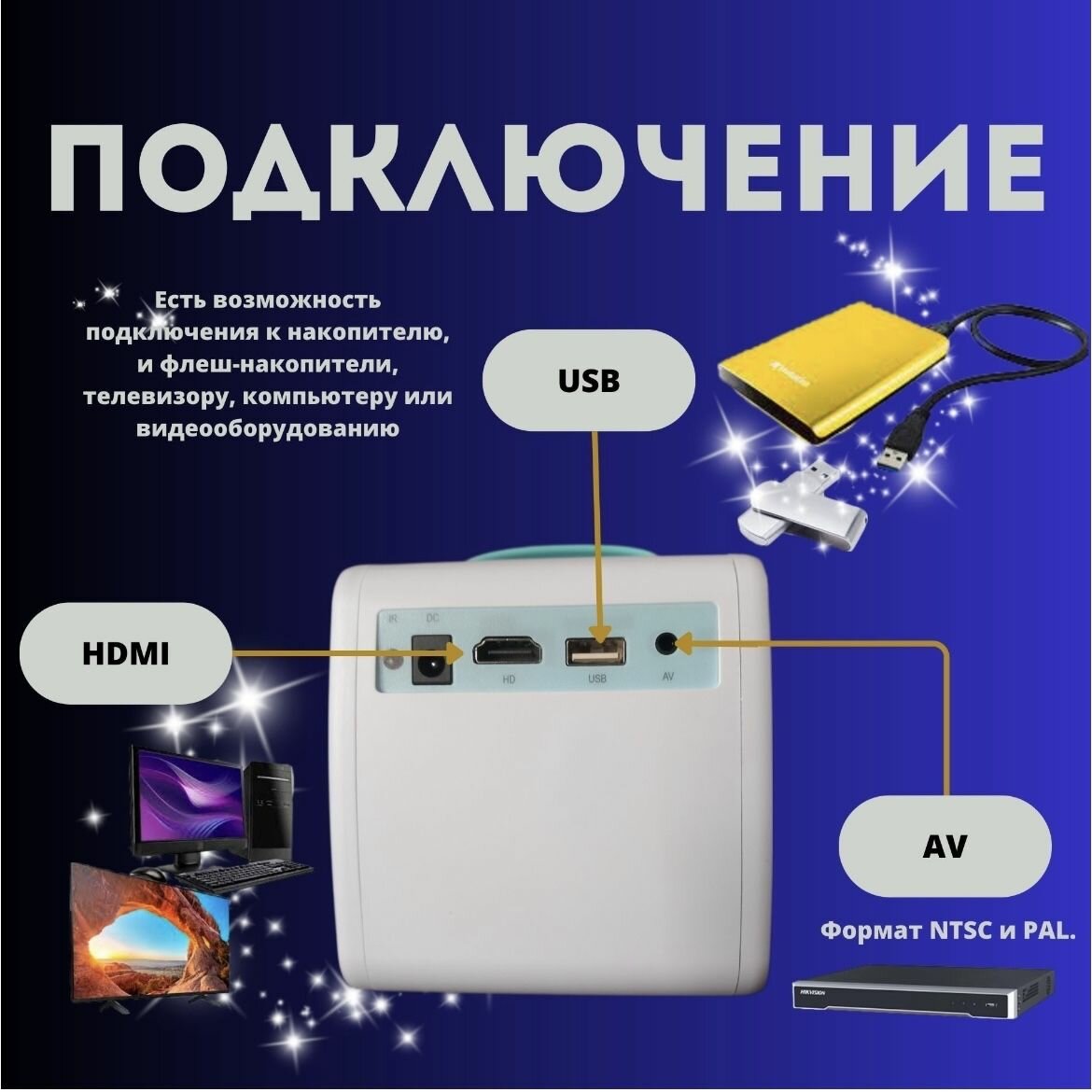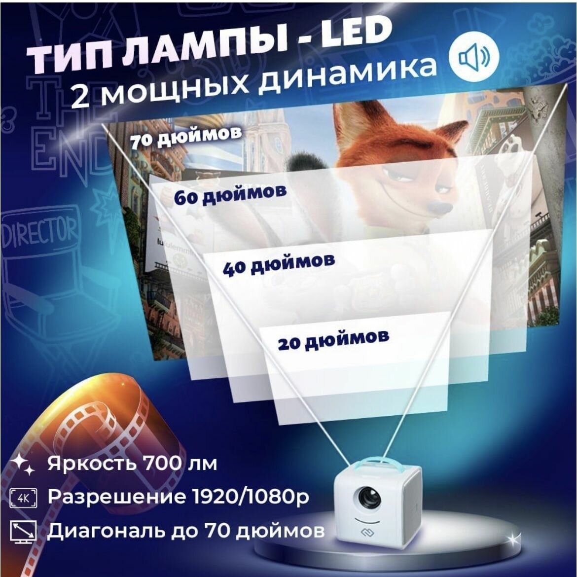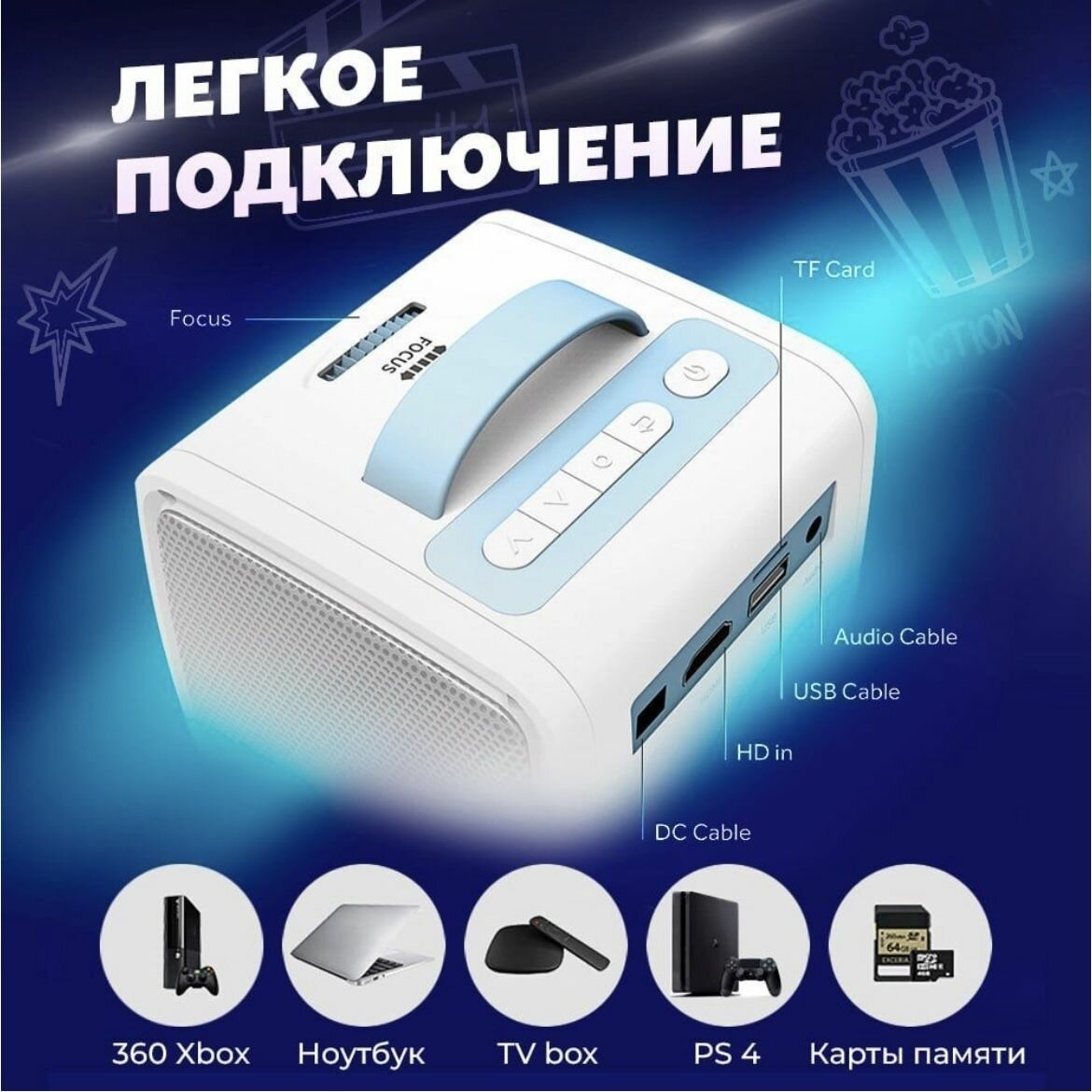 Мини проектор портативный КУБ для фото, видео, музыки. интересное: