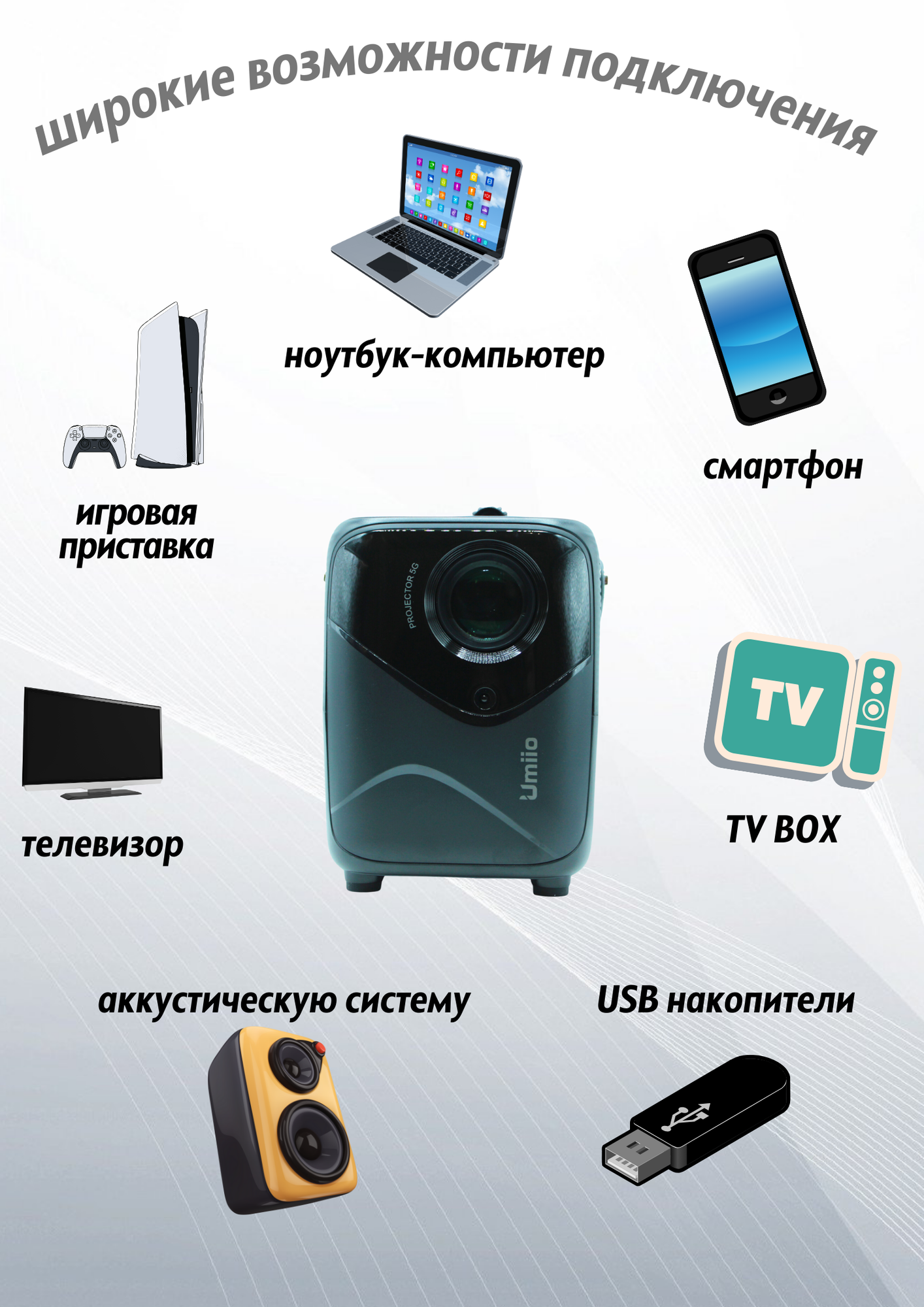 Проектор Umiio Q1 с HDMI / Портативный проектор / Мини проектор Umiio / Full HD Android TV / Черный / Family Store Home интересное: