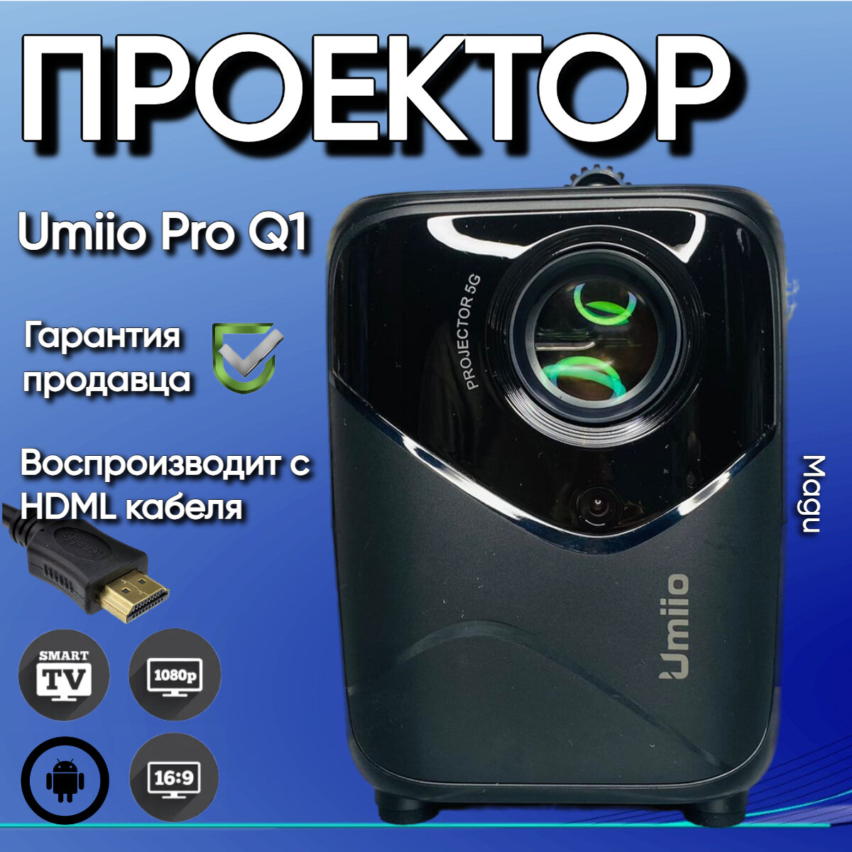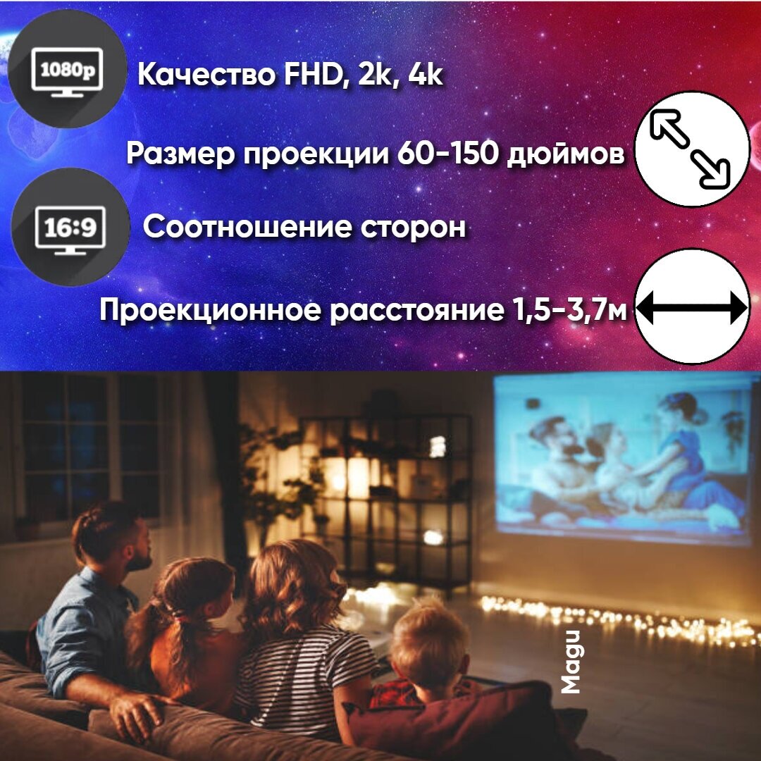 Проектор для дома UMIIO с системой 5G Android и поддержкой Wi-Fi / Видеопроектор для офиса, Black Magu интересное: