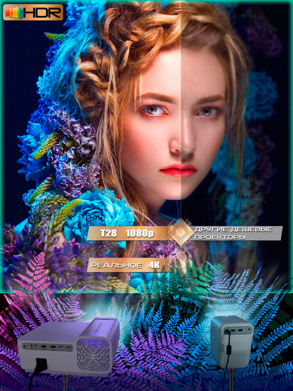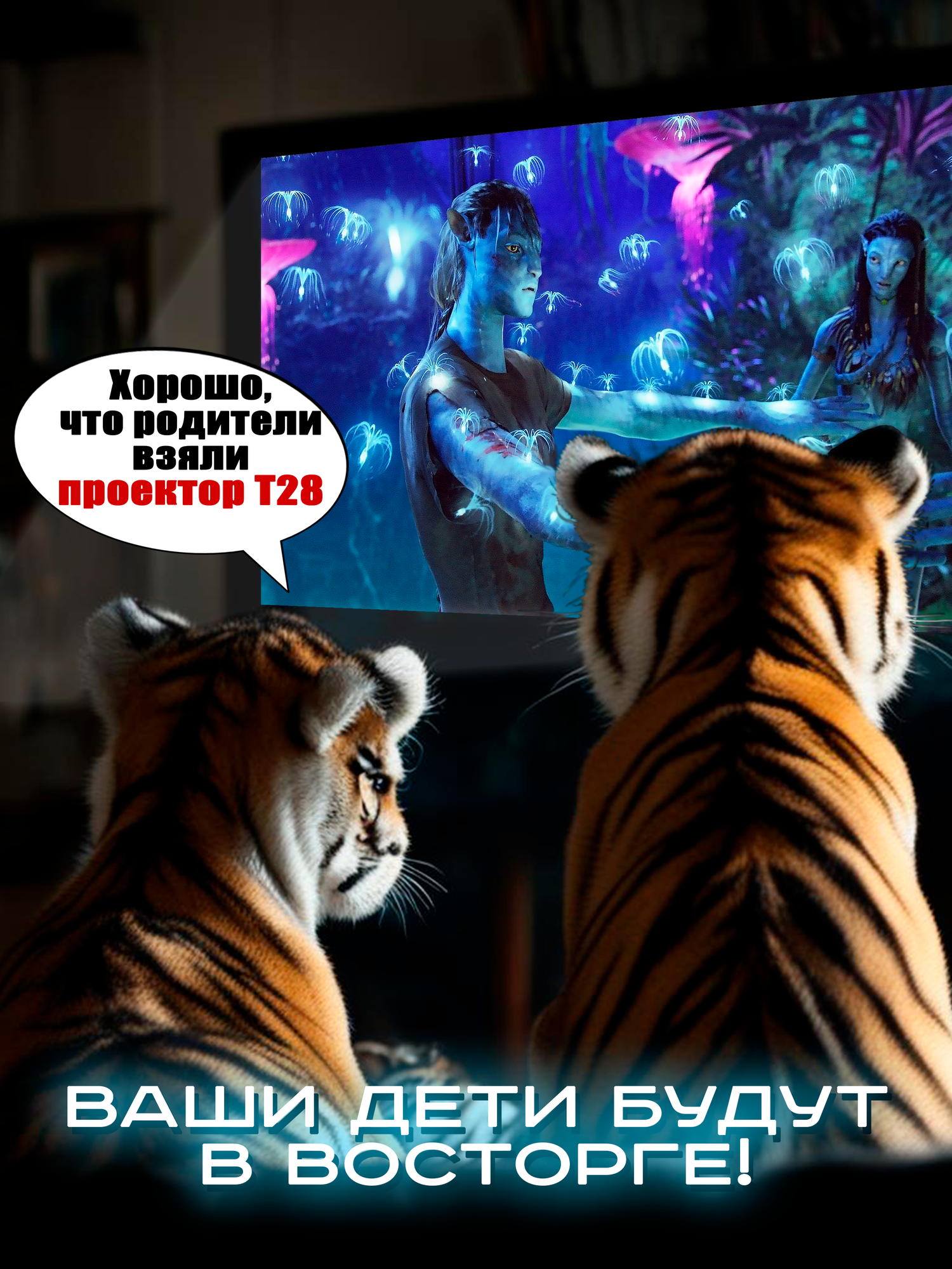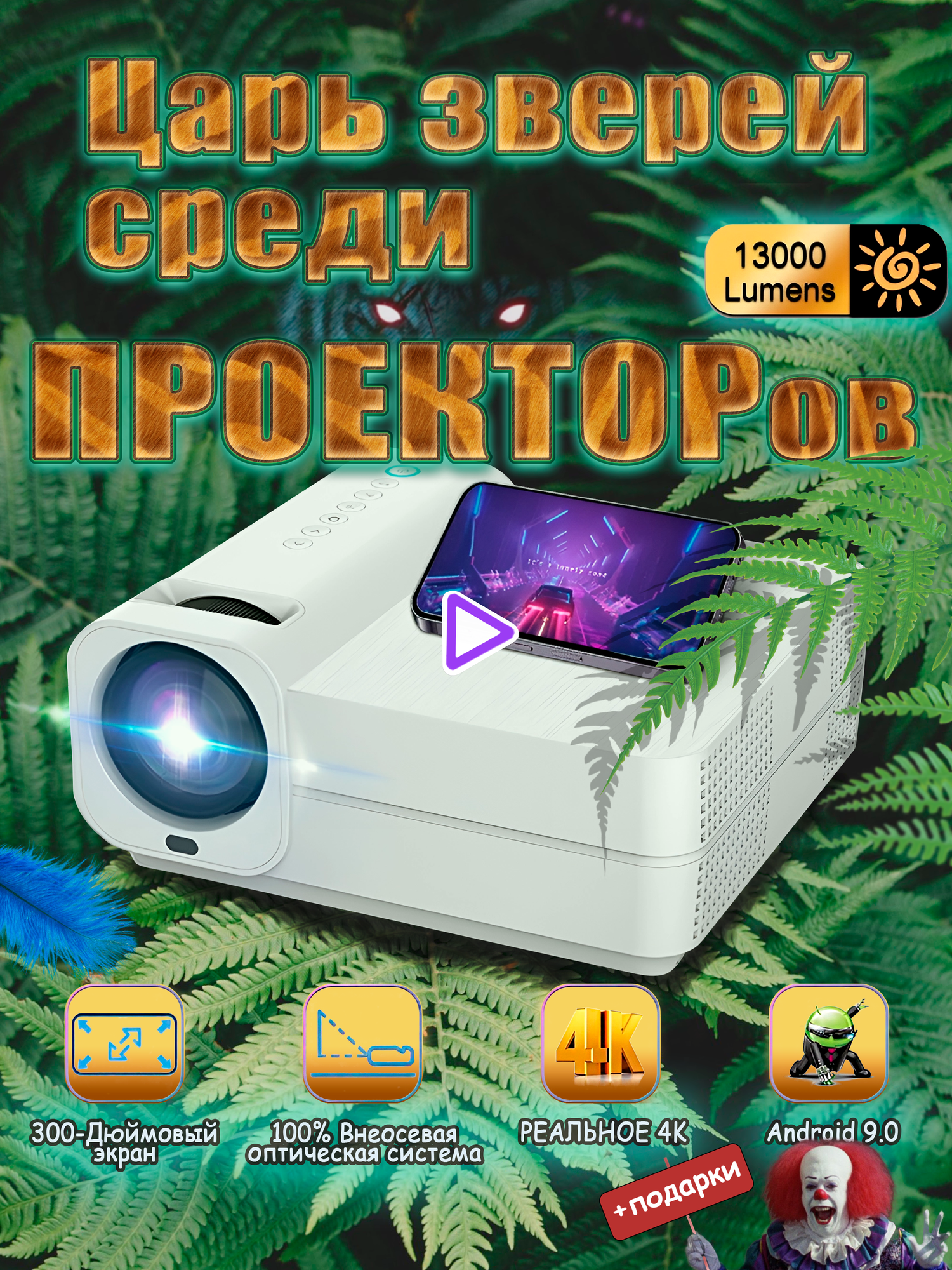 Проектор для домашнего кинотеатра 4к T28 4K + подарки (300 дюймов, Android 9.0, Wi-Fi, HDMI, LCD, RU, белый) интересное: