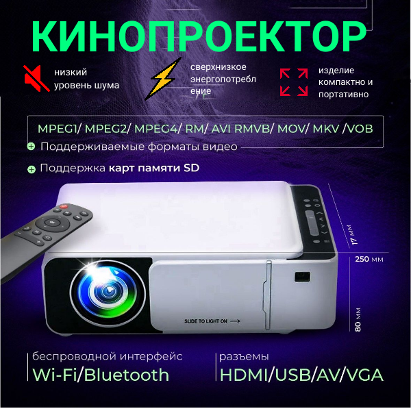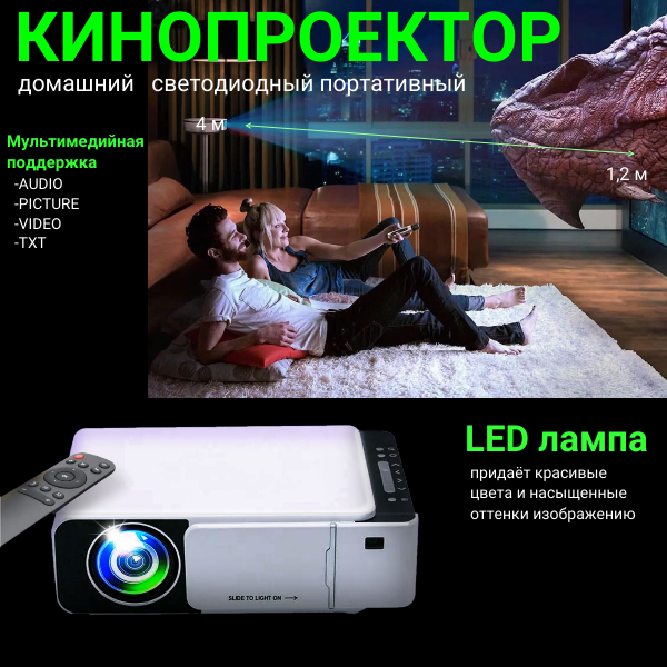 Проектор мультимедийный портативный Everycom T5 для просмотра фильмов Wi-Fi Домашний кинотеатр интересное: