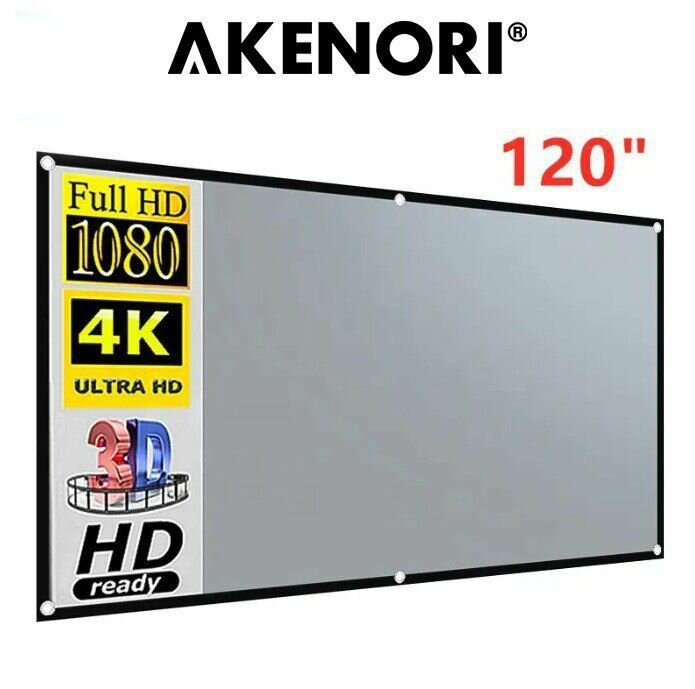 Экран для проектора светоотражающий серый Akenori 003D 120 дюймов 16:9 " липучки+пакет