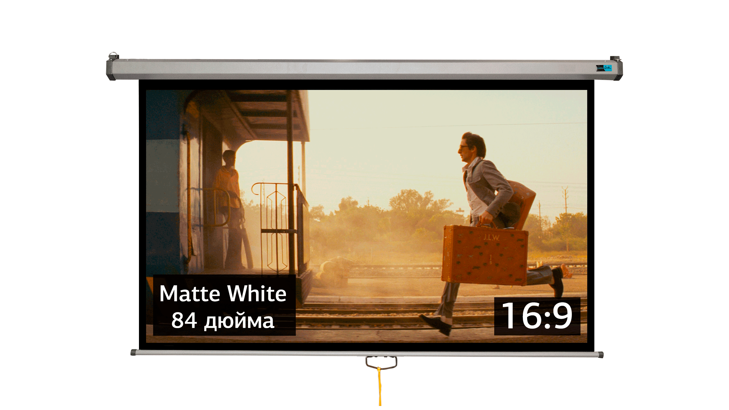 Экран 186x104.6см Wallscreen 16:9 настенно-потолочный рулонный белый 84' Matt White (MW), серый кор
