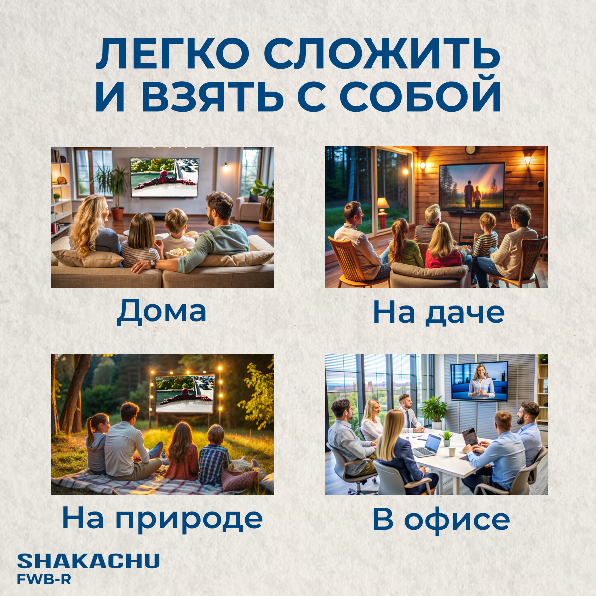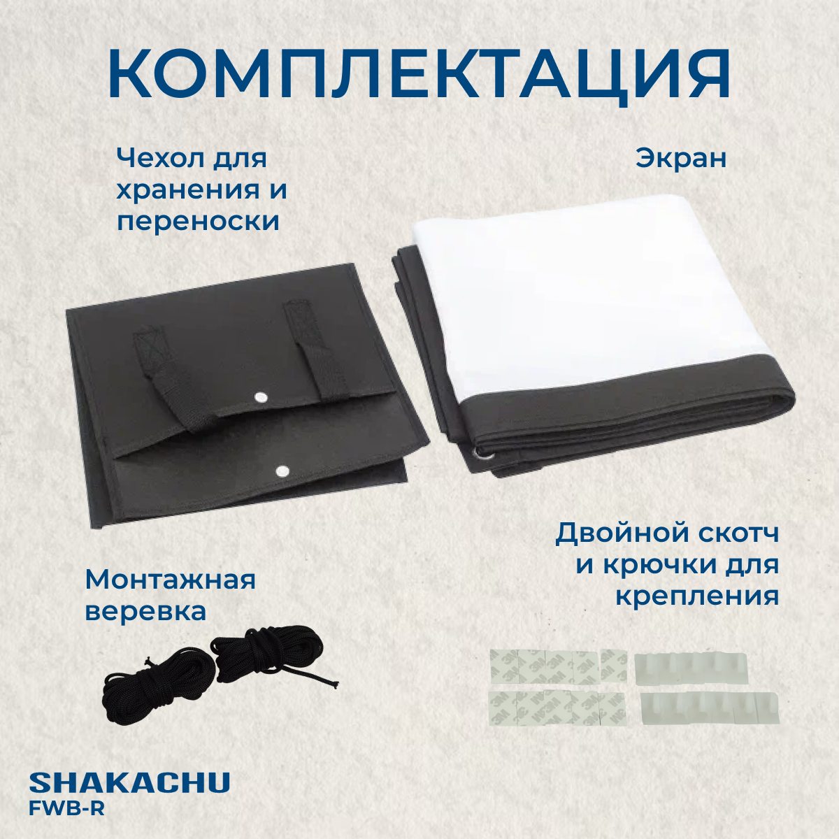 | Дополнительная информация | Shakachu FWB100R - это надежный, удобный и функциональный экран для проектора, который станет незаменимым помощником в организации презентаций и мероприятий. |