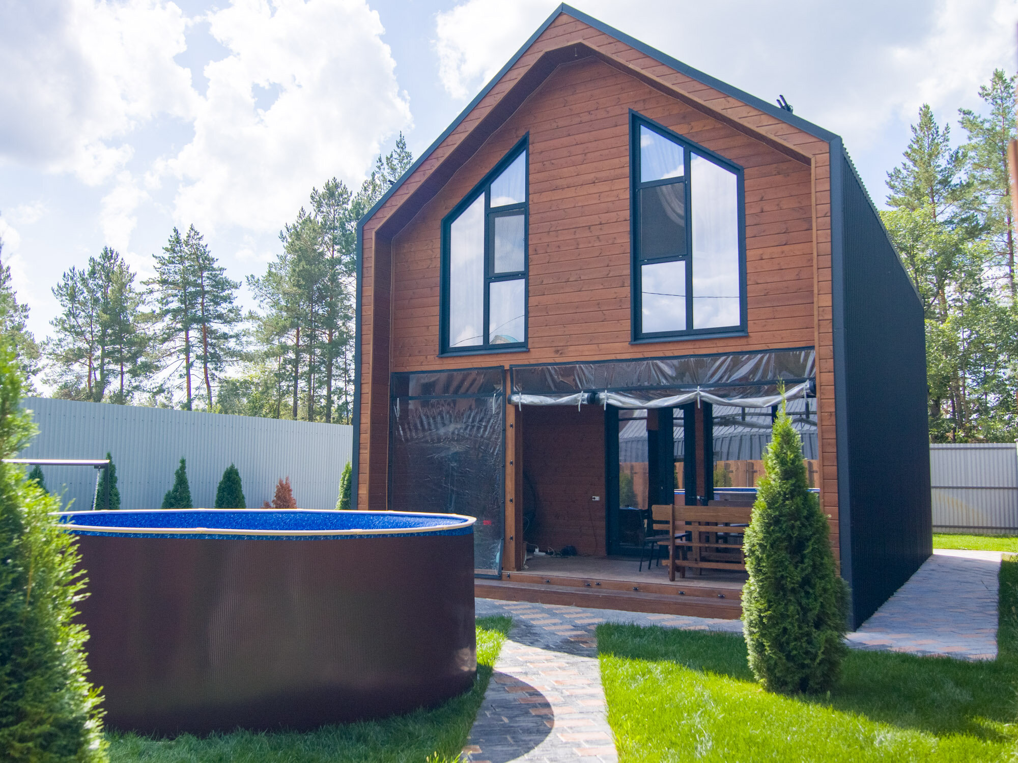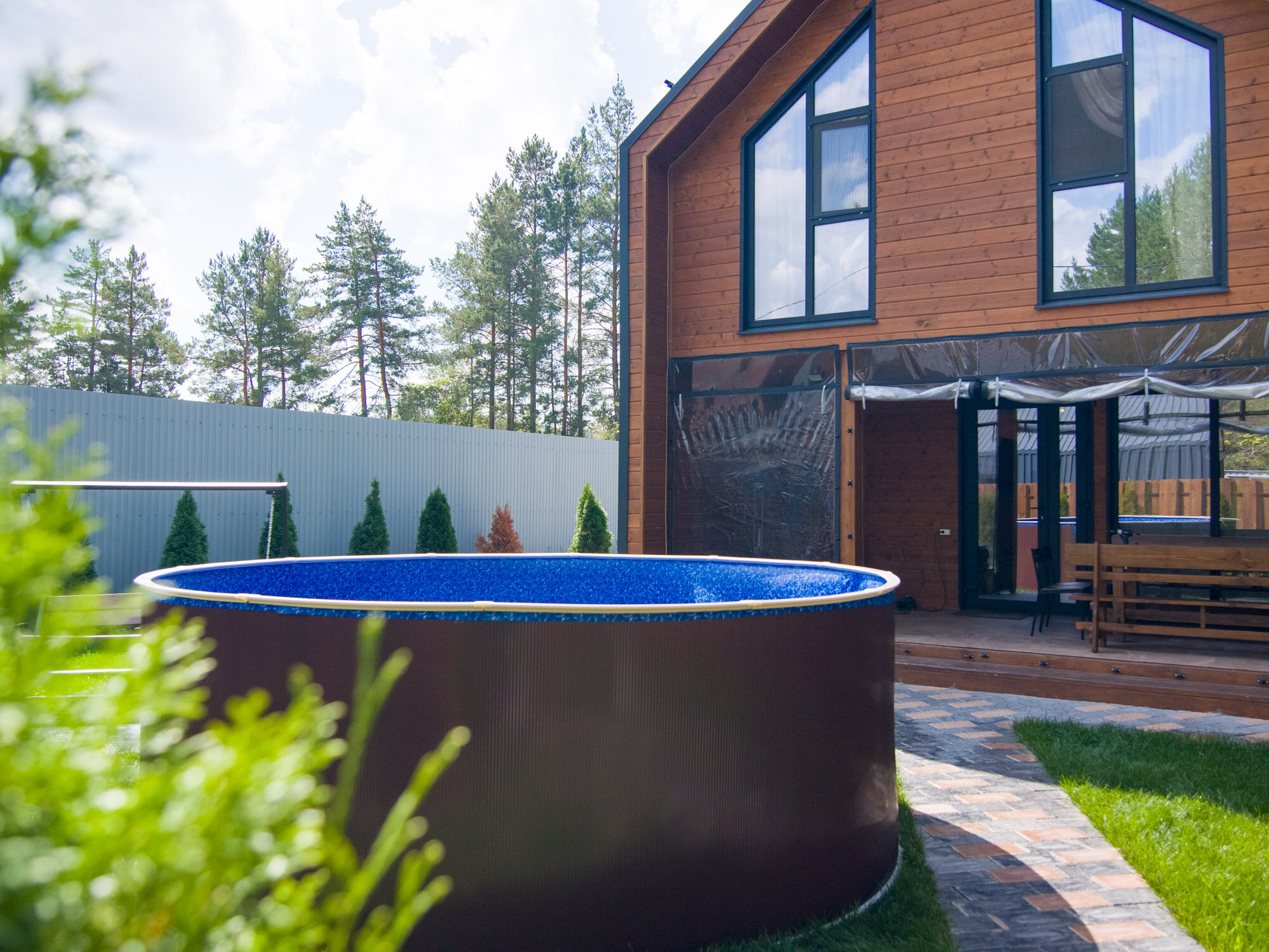 Бассейн каркасный морозоустойчивый круглый Лагуна 200 х 125 см, Темное дерево