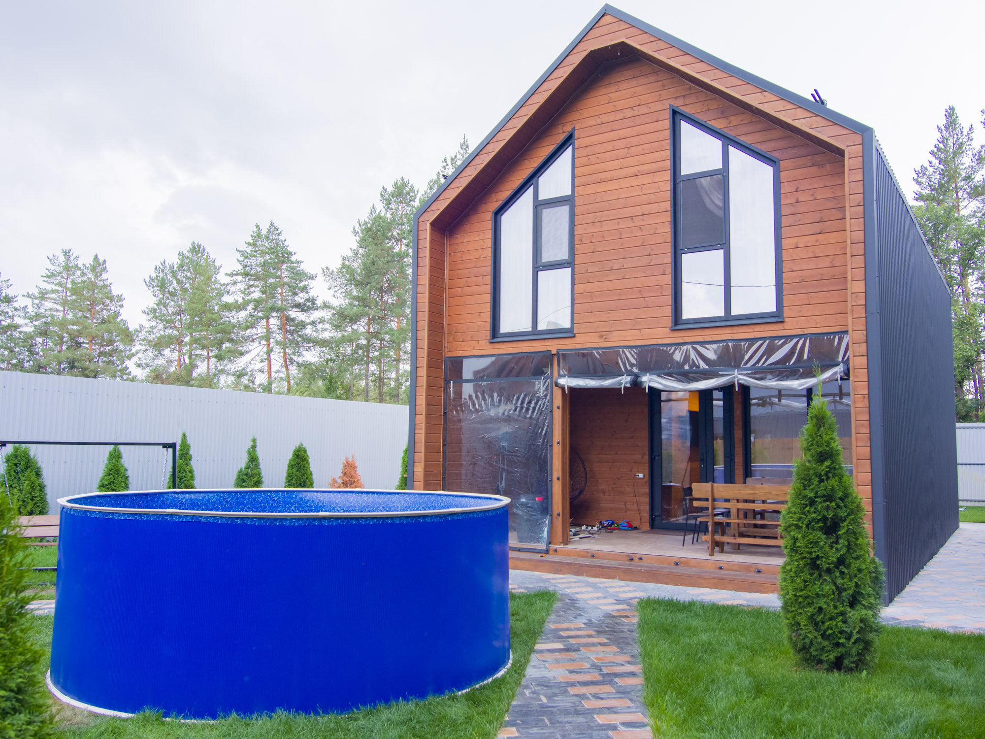 Бассейн каркасный морозоустойчивый круглый Лагуна 200 х 125 см, Темное дерево