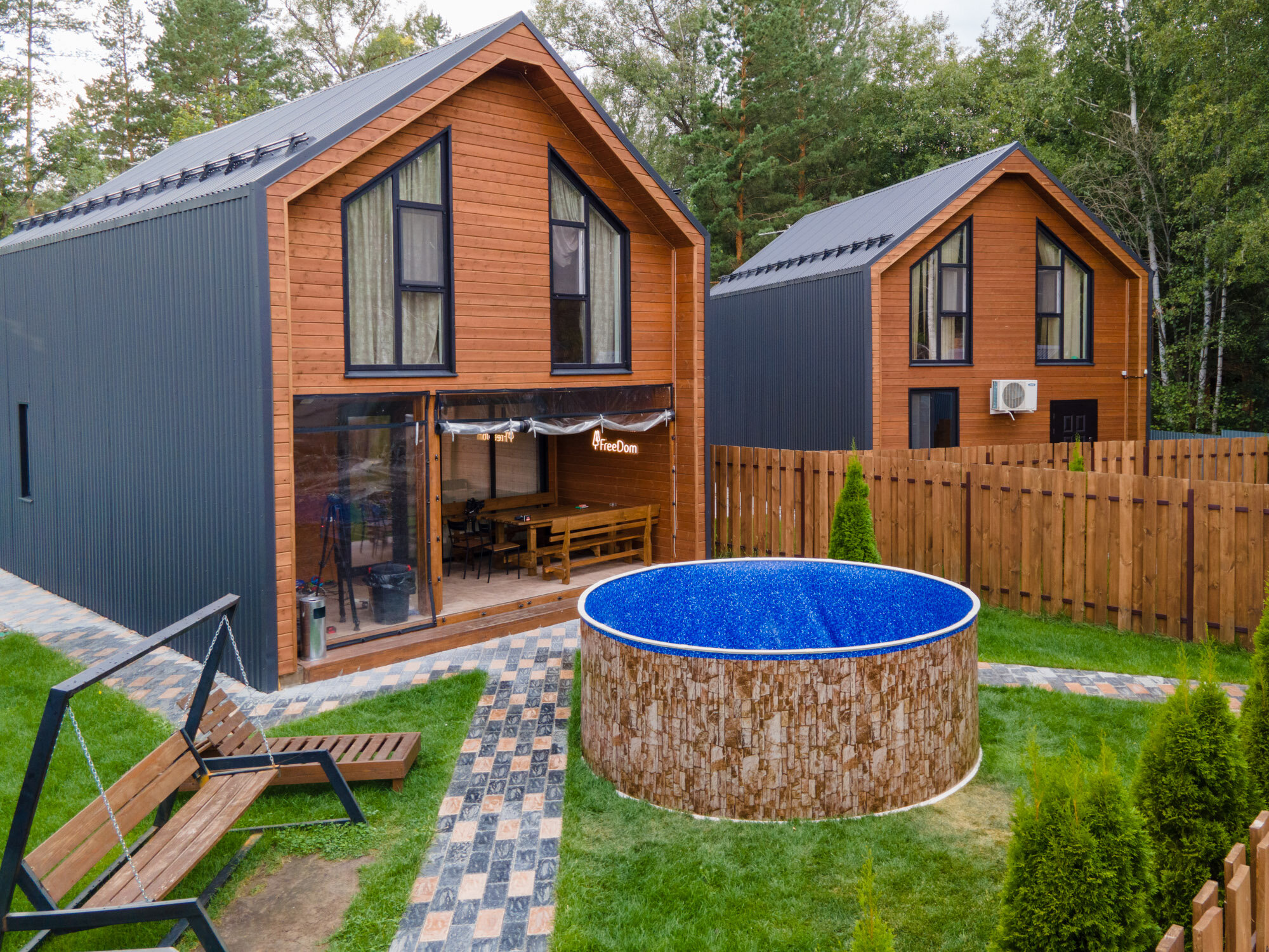 Бассейн каркасный морозоустойчивый круглый Лагуна 200 х 125 см, Темное дерево