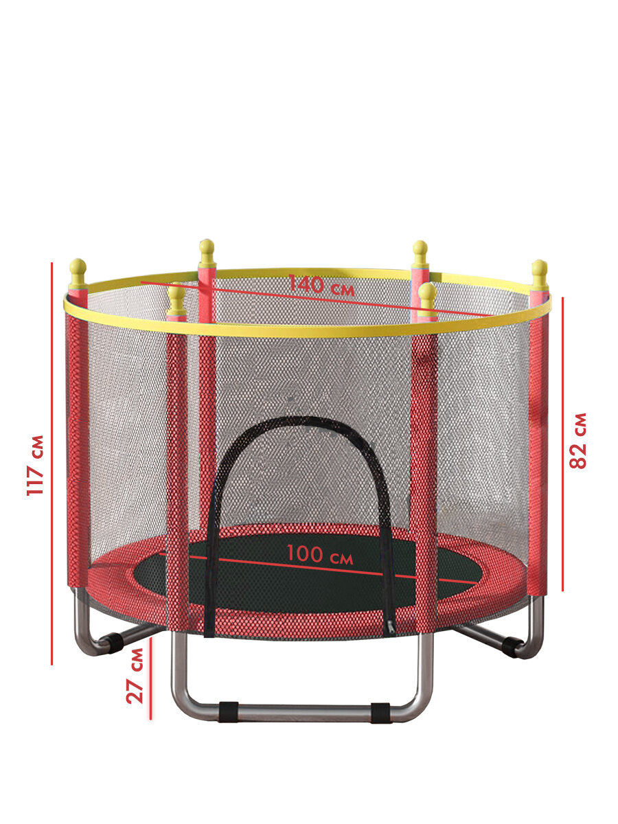 Купить Батут детский с сеткой каркасный, для улицы и дома 140 см, красный