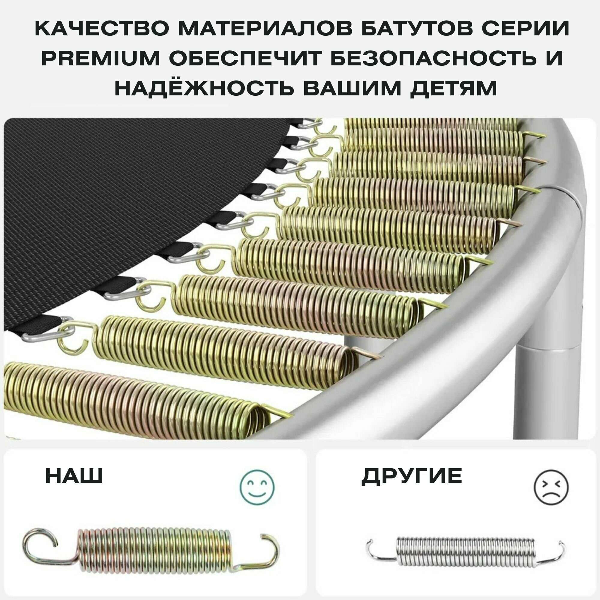 | Состав набора | батут, стойки для защитной сети, защитная сеть |