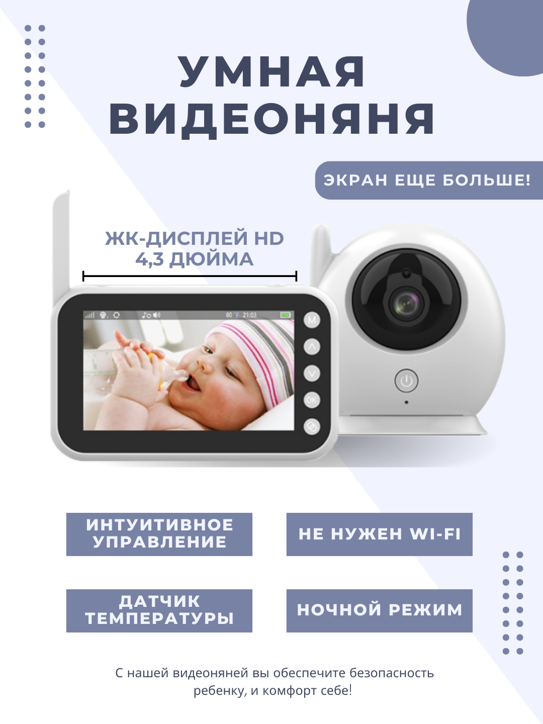 Умная видеоняня с монитором Baby Monitor интересное: