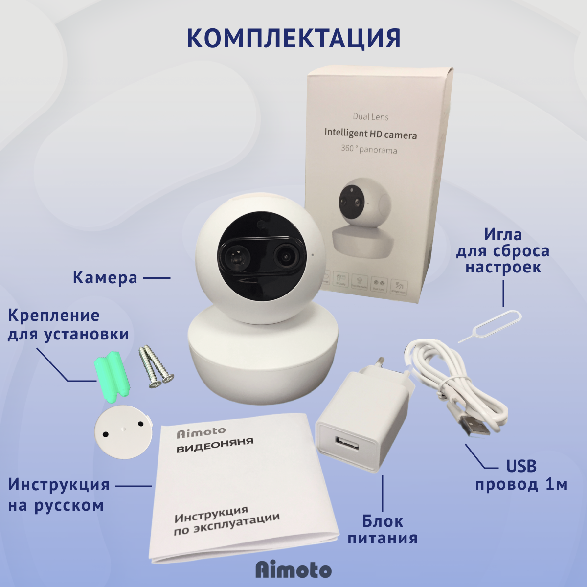 Купить Видеоняня Aimoto с 2 камерами и датчиком движения, поворотная камера видеонаблюдения с обзором 360°, WiFi