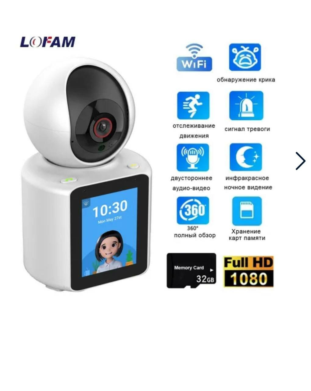 Умная видеоняня Wi-Fi + Ночное видение + Дисплей интересное: