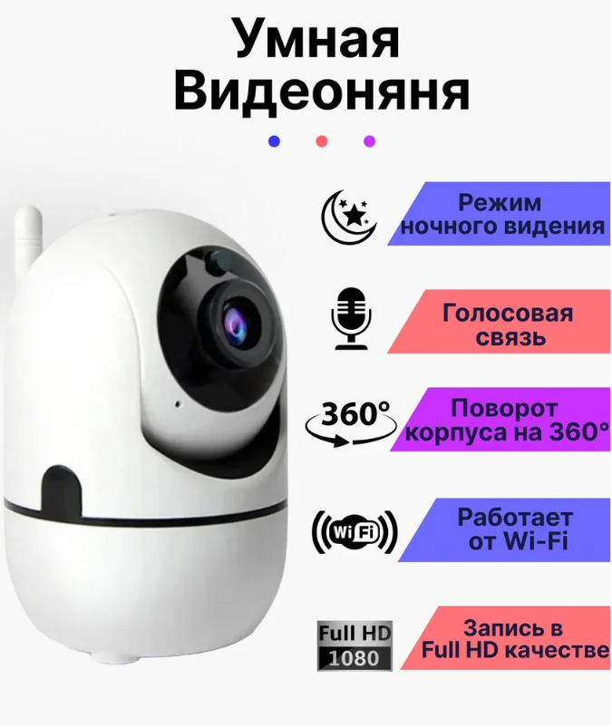 Купить Умная видеоняня Wi-Fi HD 1080 с записью видео и датчиком движения