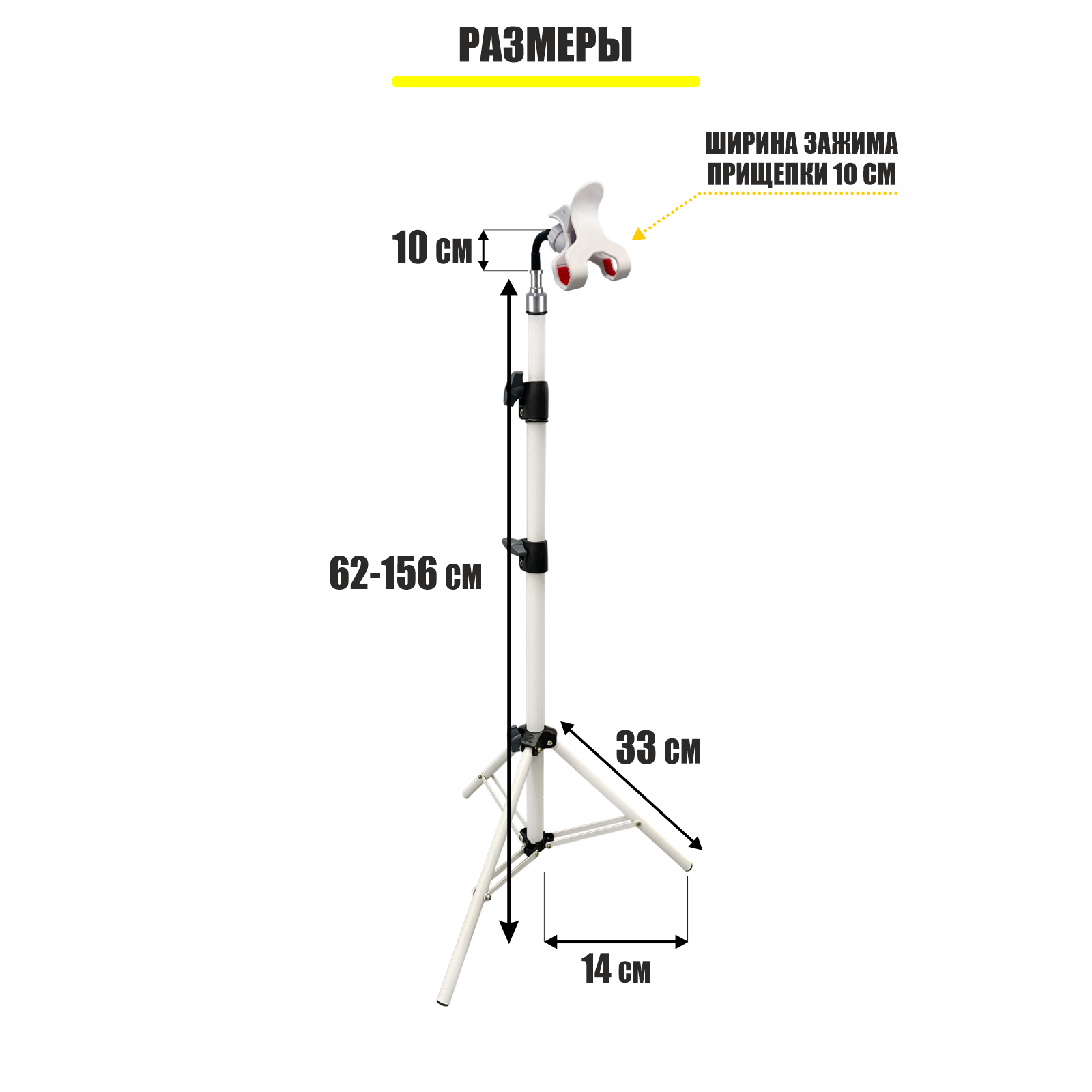 Напольная стойка усиленная WST-156-10G крепление для видеоняни с прищепкой до 10 см на гибком держателе, белый интересное: