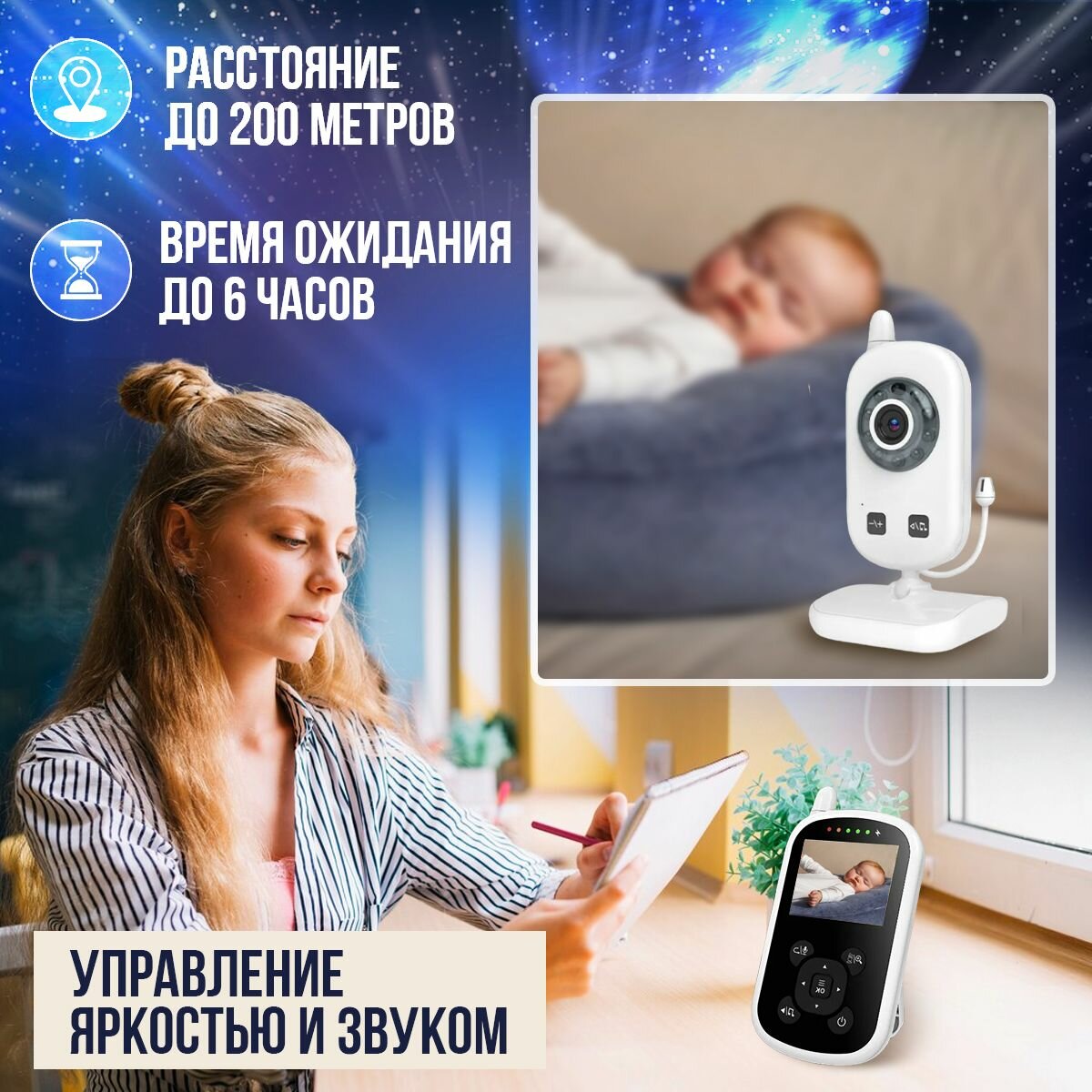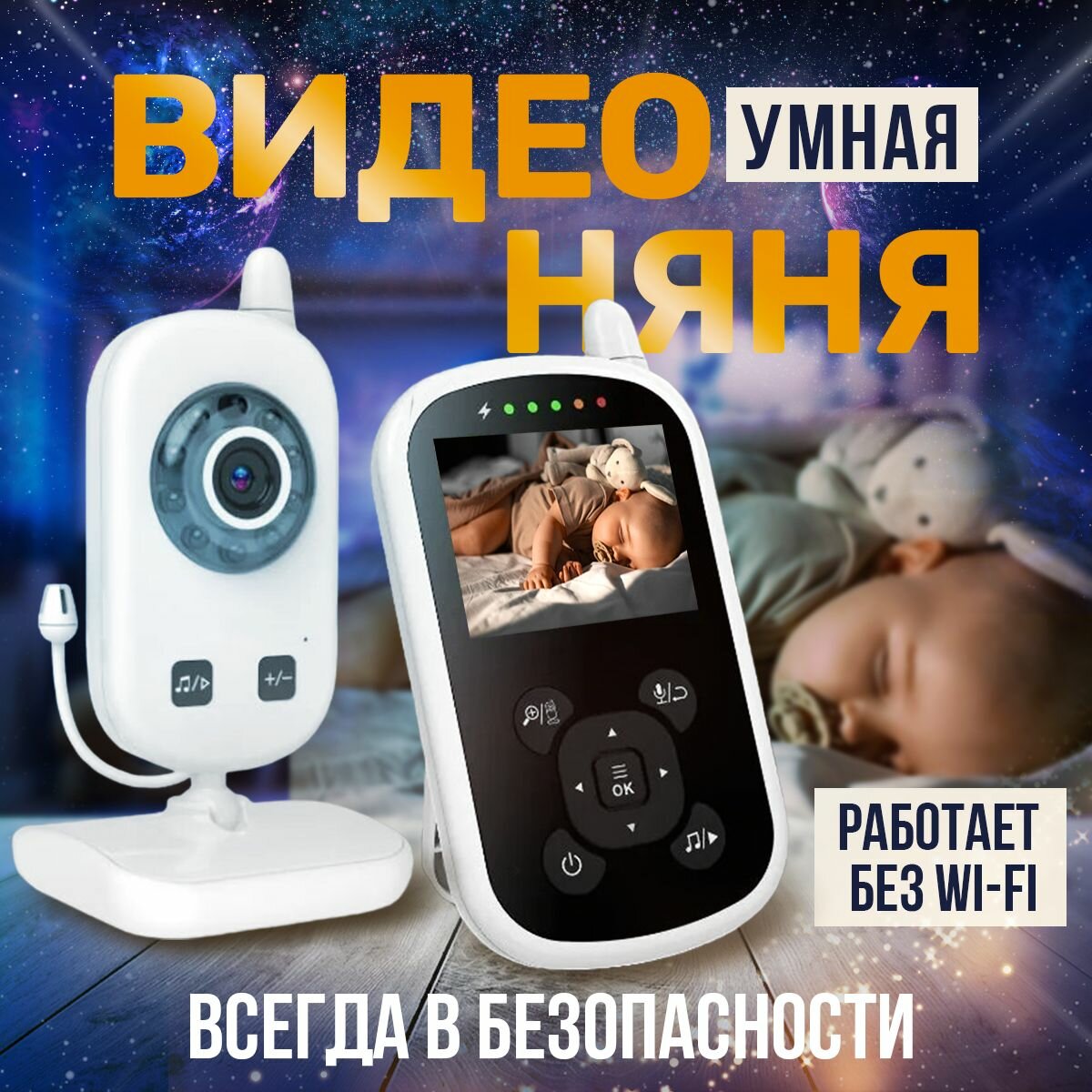 Видеоняня беспроводная, радионяня с камерой, VOX, ночным видением, контролем температуры, для мам и малышей; без WI-FI интересное: