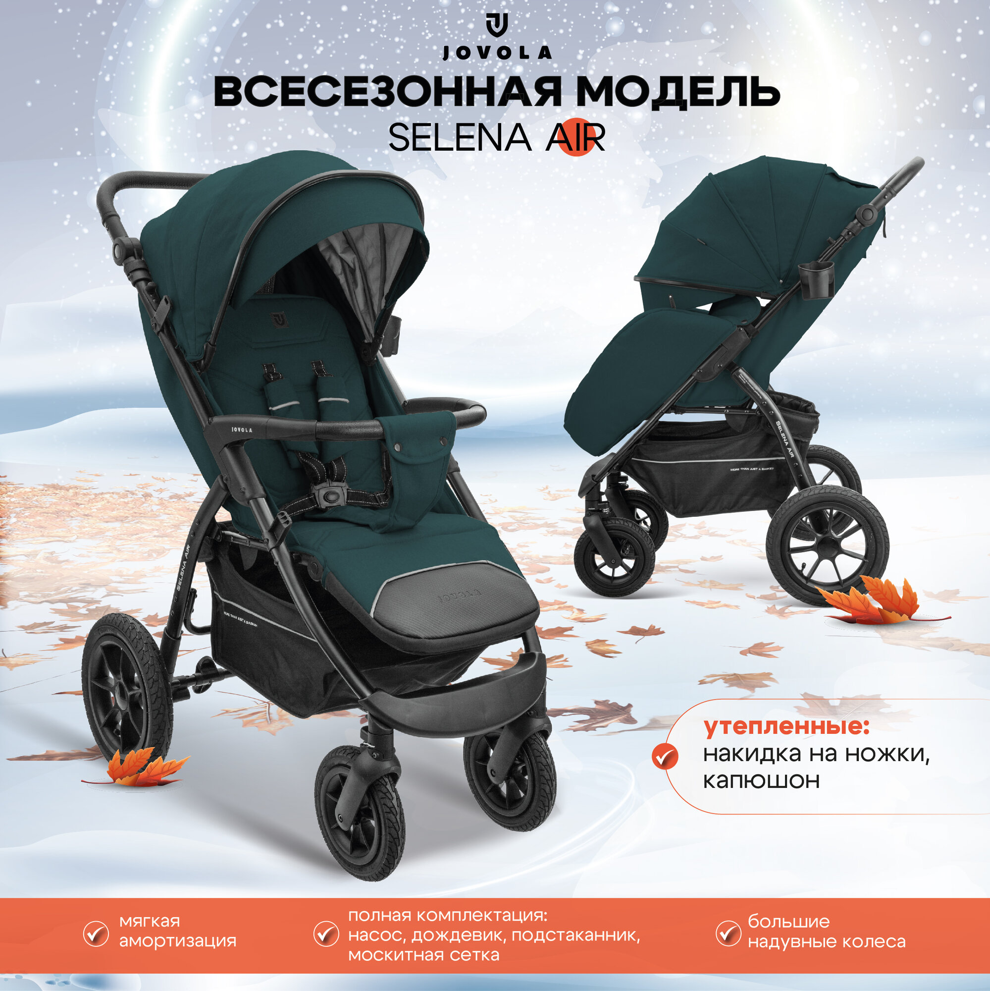 Коляска прогулочная JOVOLA SELENA AIR всесезонная надувные колеса, темно-зелёный интересное: