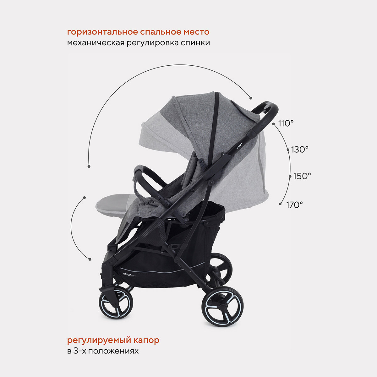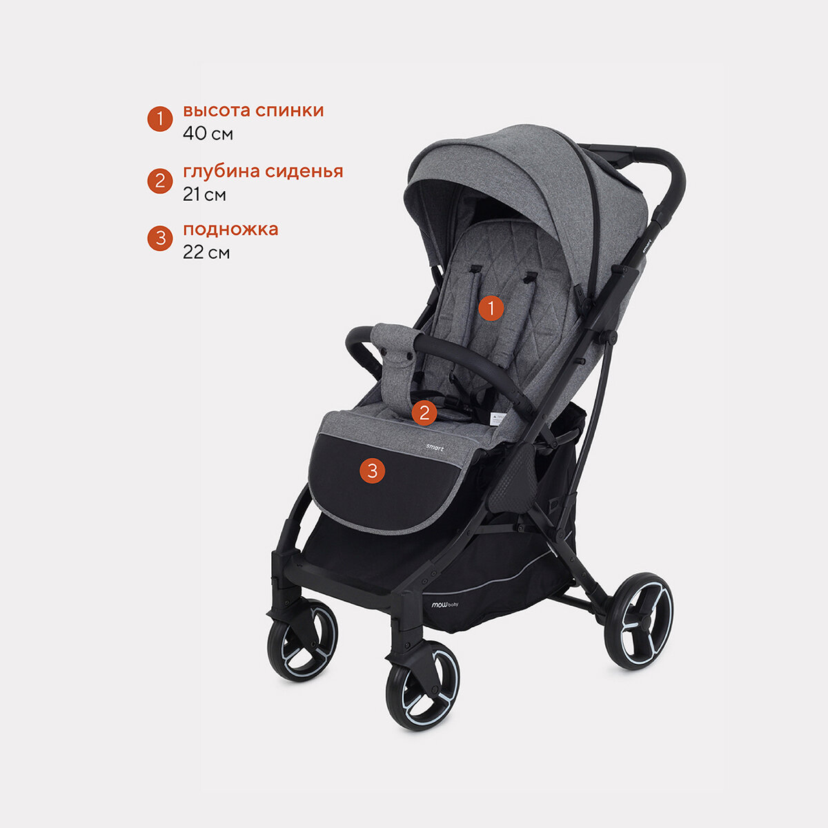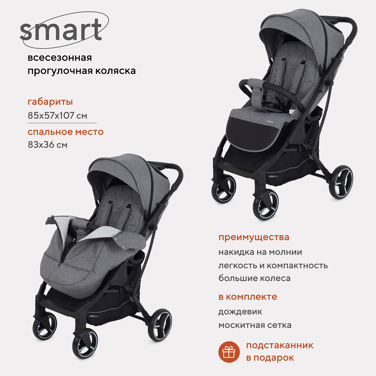 Коляска прогулочная всесезонная MowBaby Smart MB101, Grey 2023 интересное: