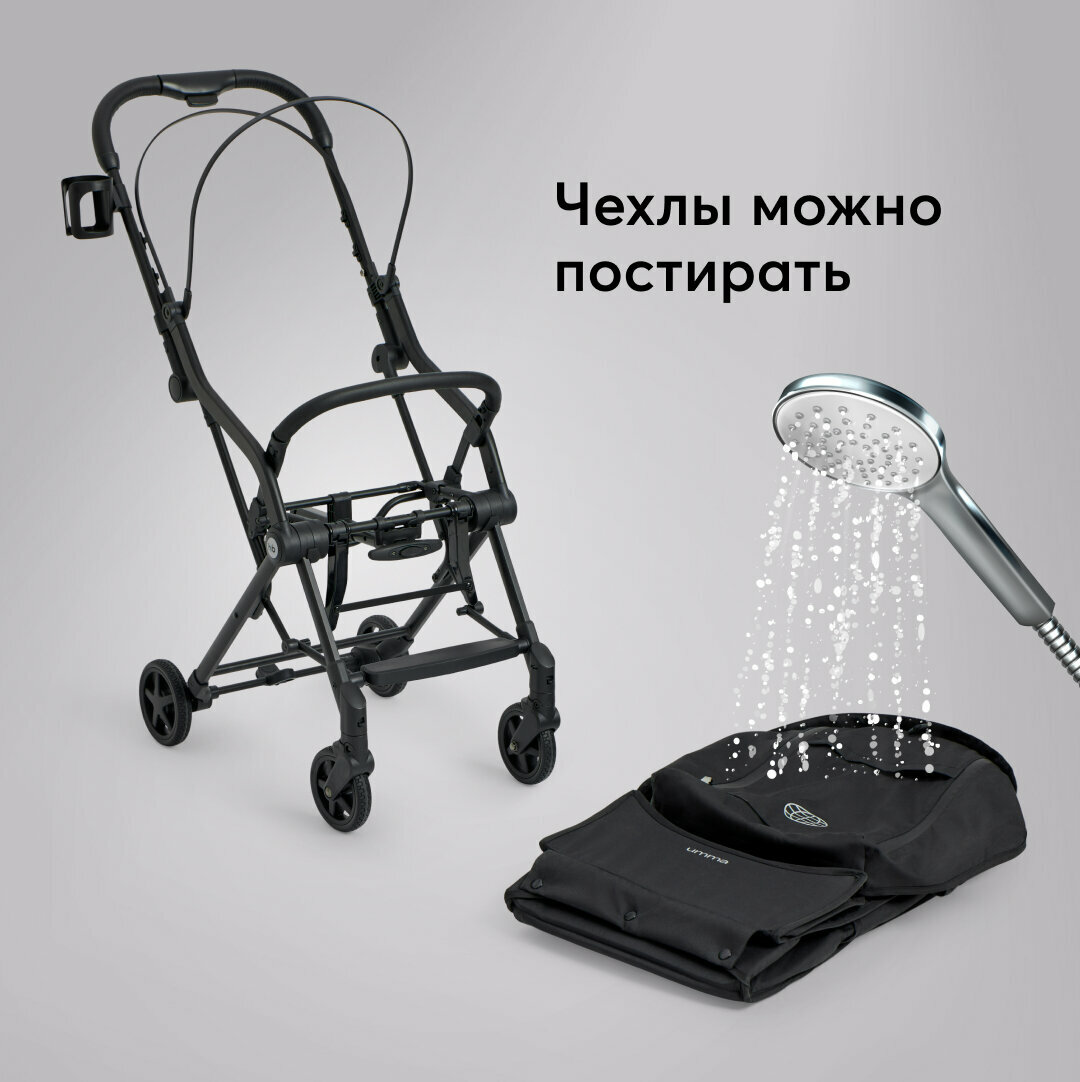 Коляска прогулочная детская Happy Baby Umma, коляска универсальная, дождевик, москитная сетка, подстаканник, черная