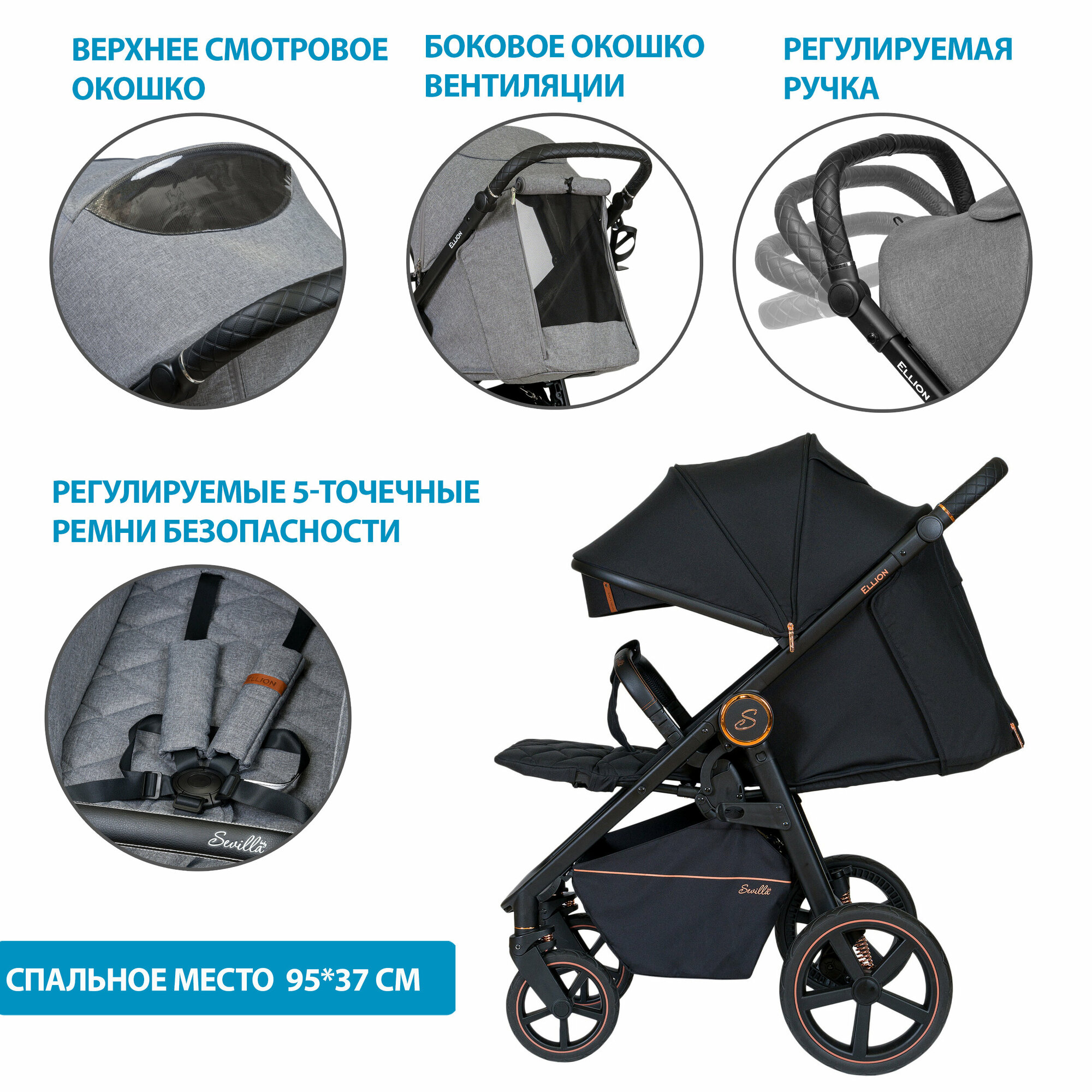 Коляска прогулочная Sevillababy Ellion E08/Phantom Black интересное: