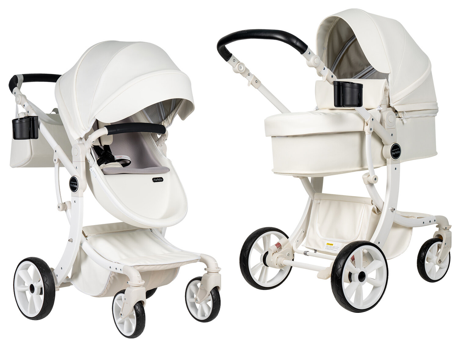Купить Детская коляска-трансформер Aimile Original PRO, для новорожденных, экокожа, люлька для новорожденных, 2 в 1, цвет белый