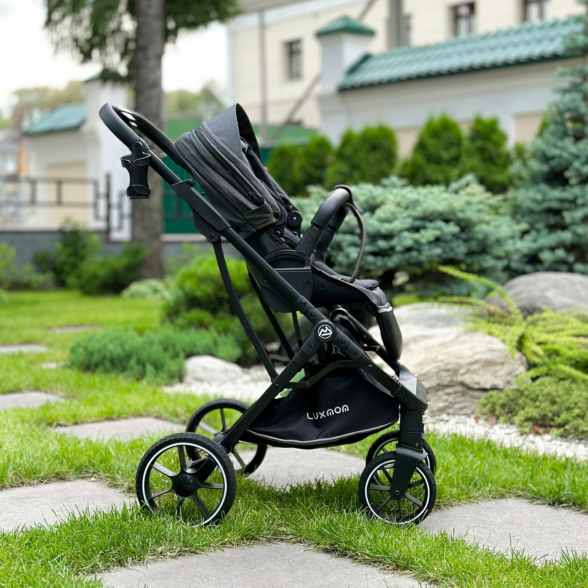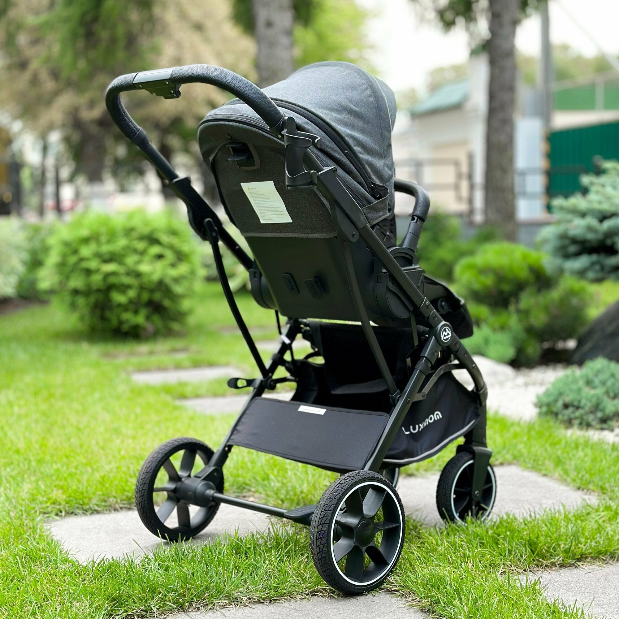 Прогулочная коляска LUXMOM 740 с реверсивным блоком, темно-серый/чёрная рама + рюкзак интересное: