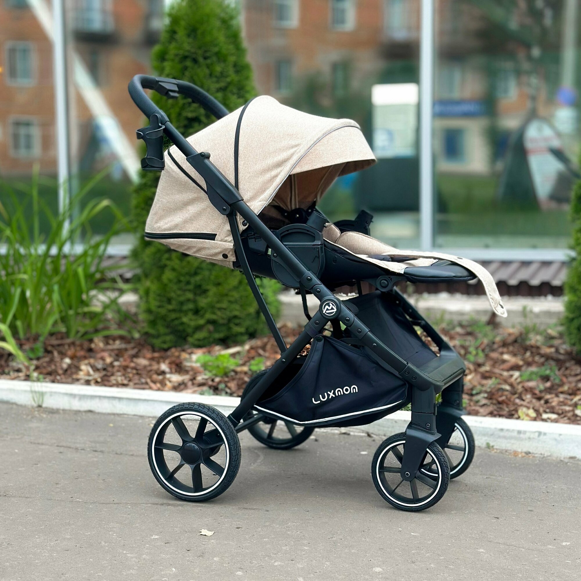 Прогулочная коляска LUXMOM 740 с реверсивным блоком, бежевый/чёрная рама + рюкзак интересное: