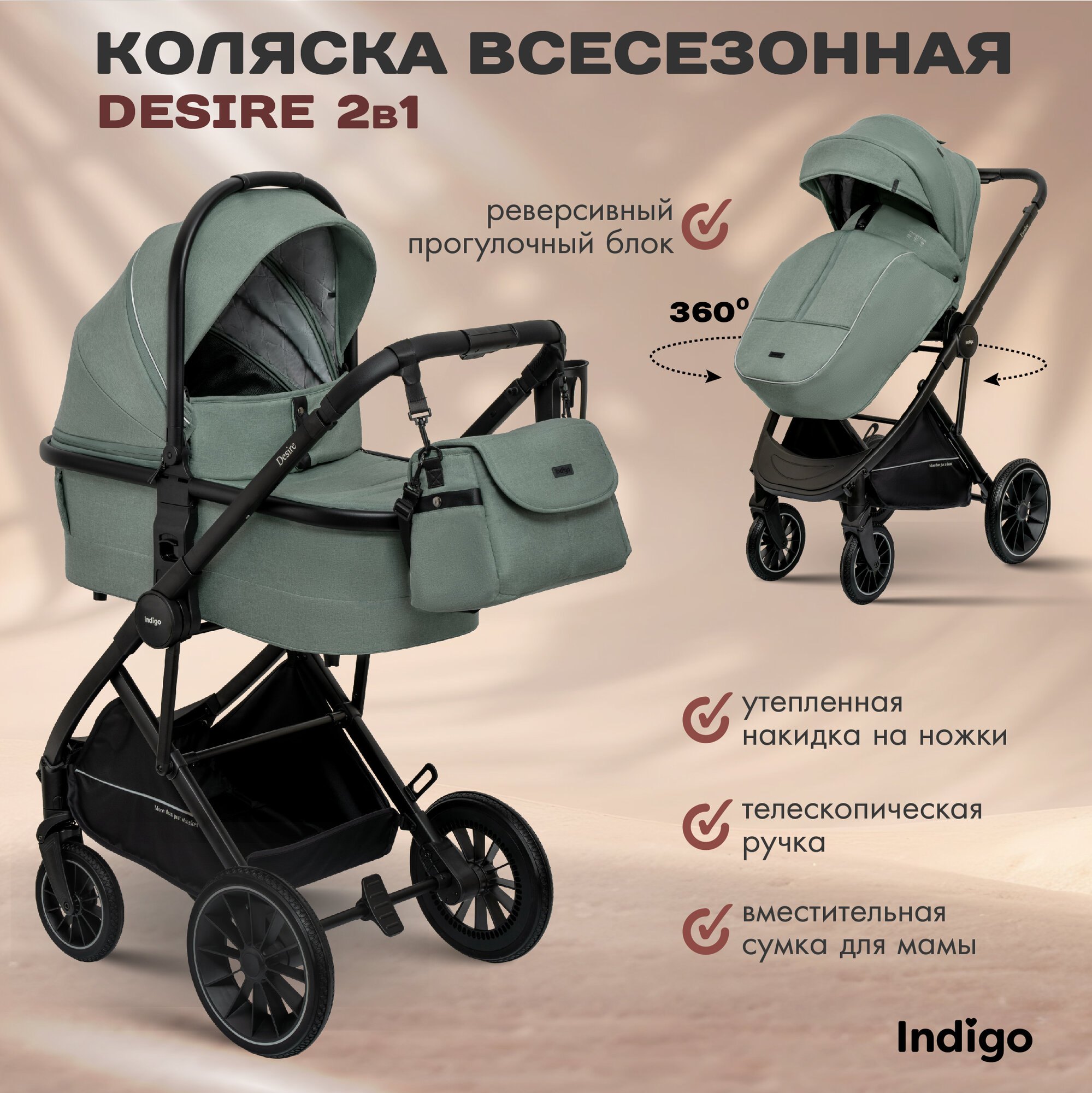 Коляска 2в1 INDIGO DESIRE универсальная, всесезонная, зеленый интересное: