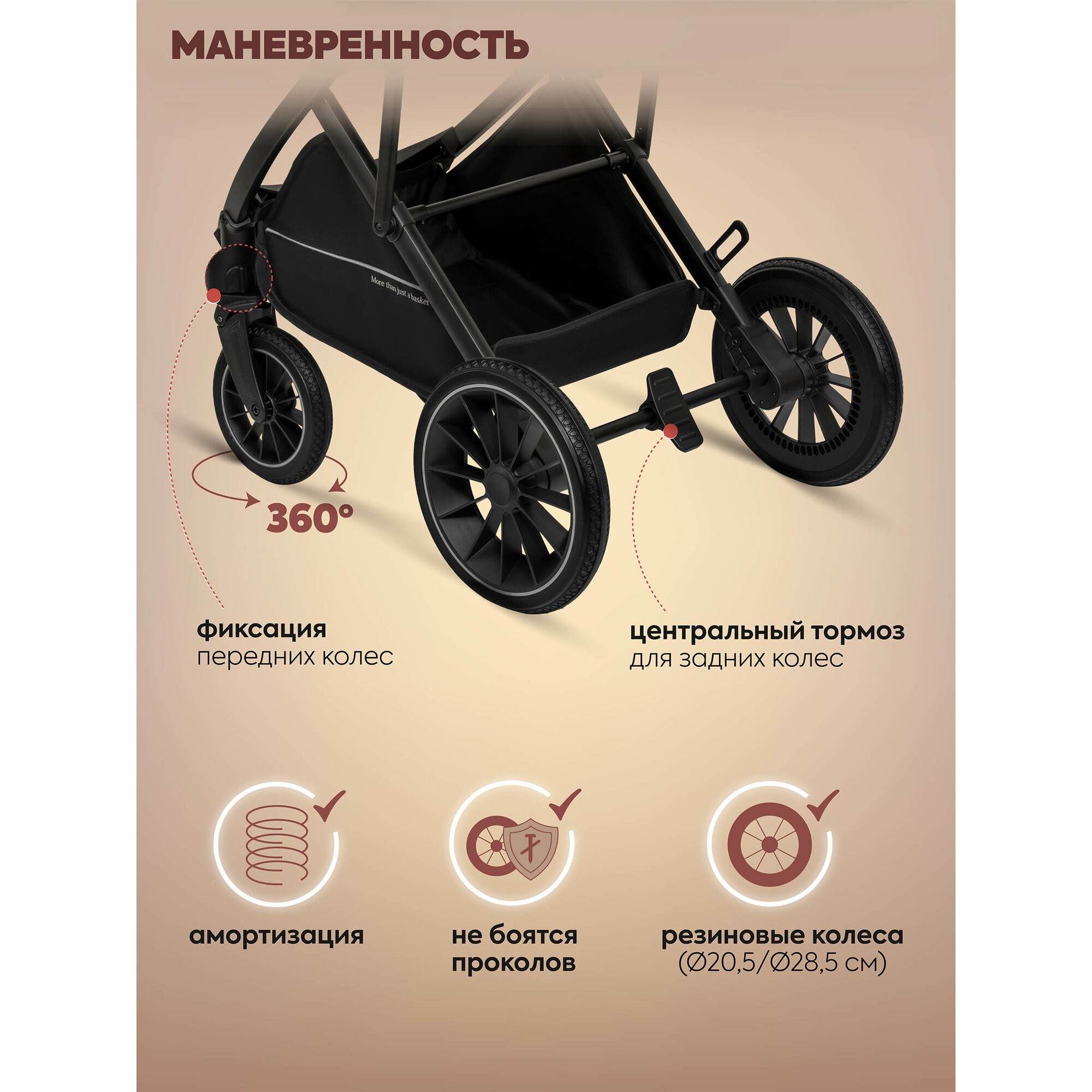 | Колеса | 4 шт., полиуретановые, 21.50-30 см |