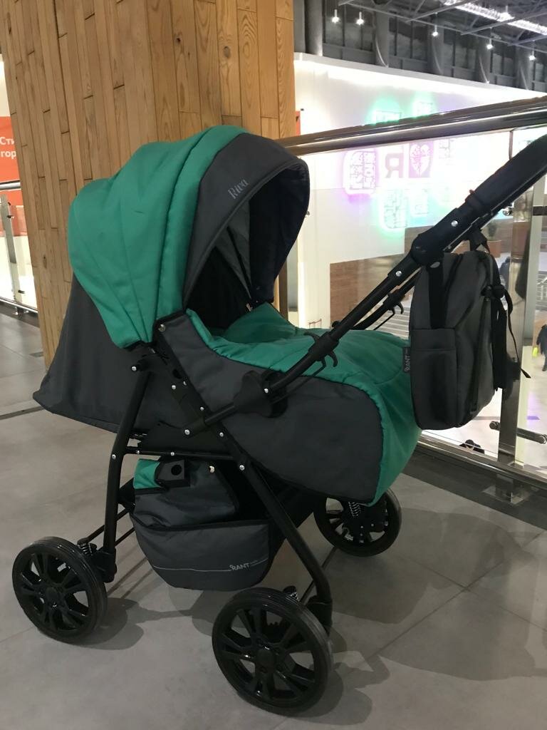 Коляска-трансформер детская Rant basic Riva AW02 с надувными колесами, зеленый интересное:
