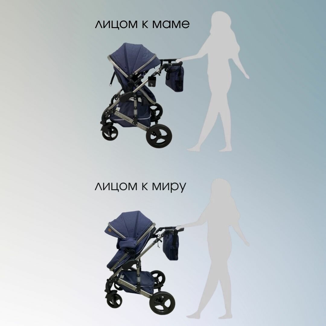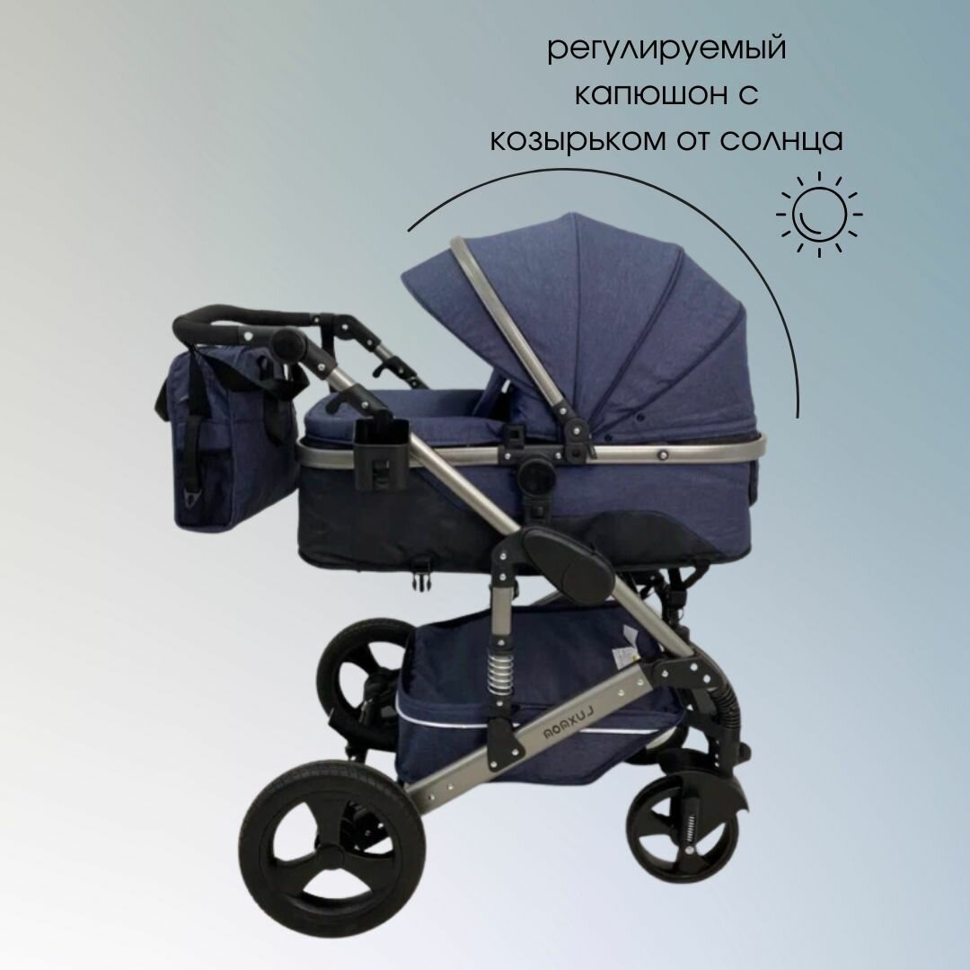Коляска-трансформер для детей от 0 до 6 месяцев Luxmom555, цвет джинсовый синий интересное:
