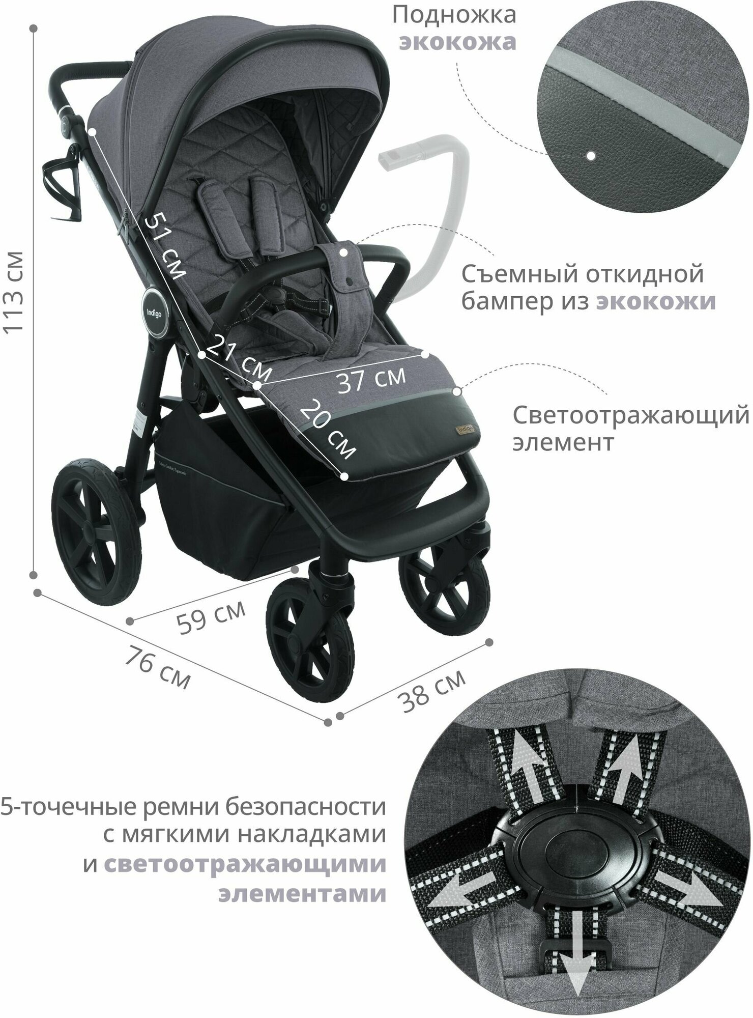 СохранитьКоляска прогулочная детская Indigo Corsa зимняя (серая) е08 интересное: