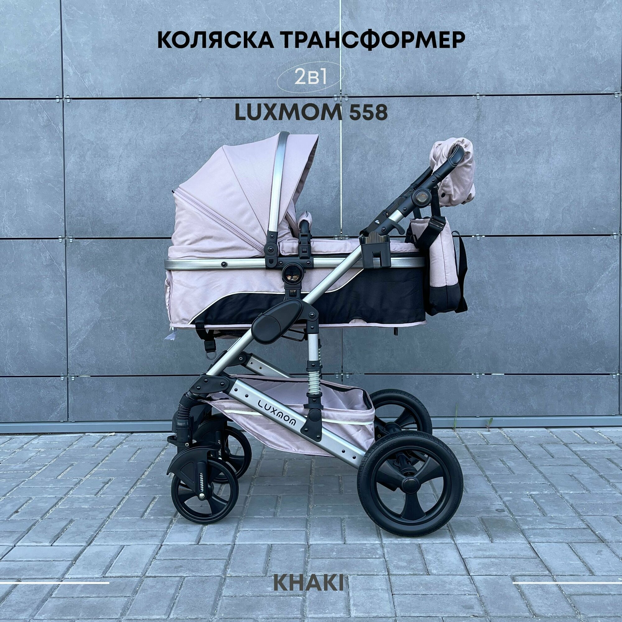 Детская коляска трансформер Luxmom 558 2в1 хаки (коричневый)