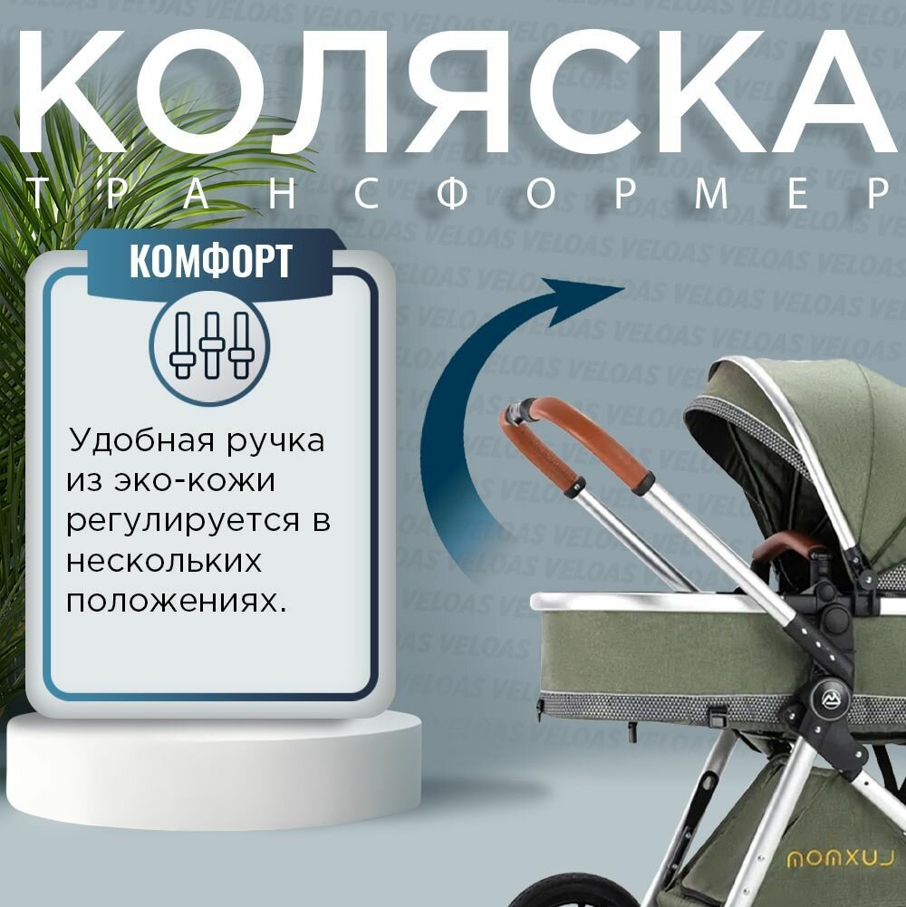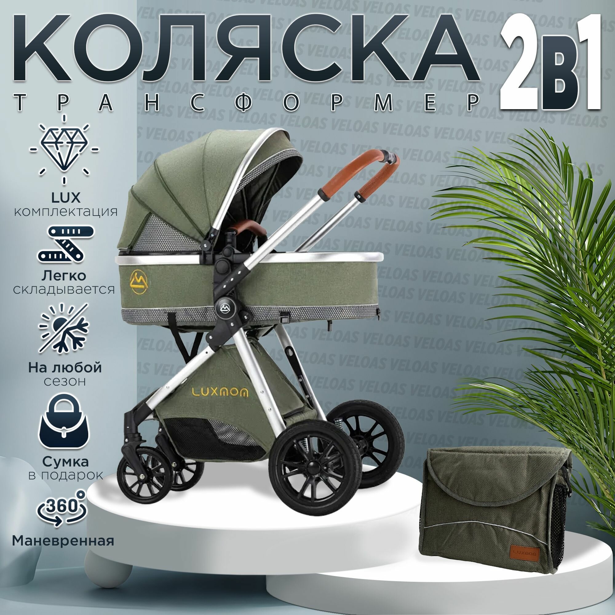 Детская коляска для новорожденных 2 в 1 luxmom HGV9 трансформер, оливковый интересное: