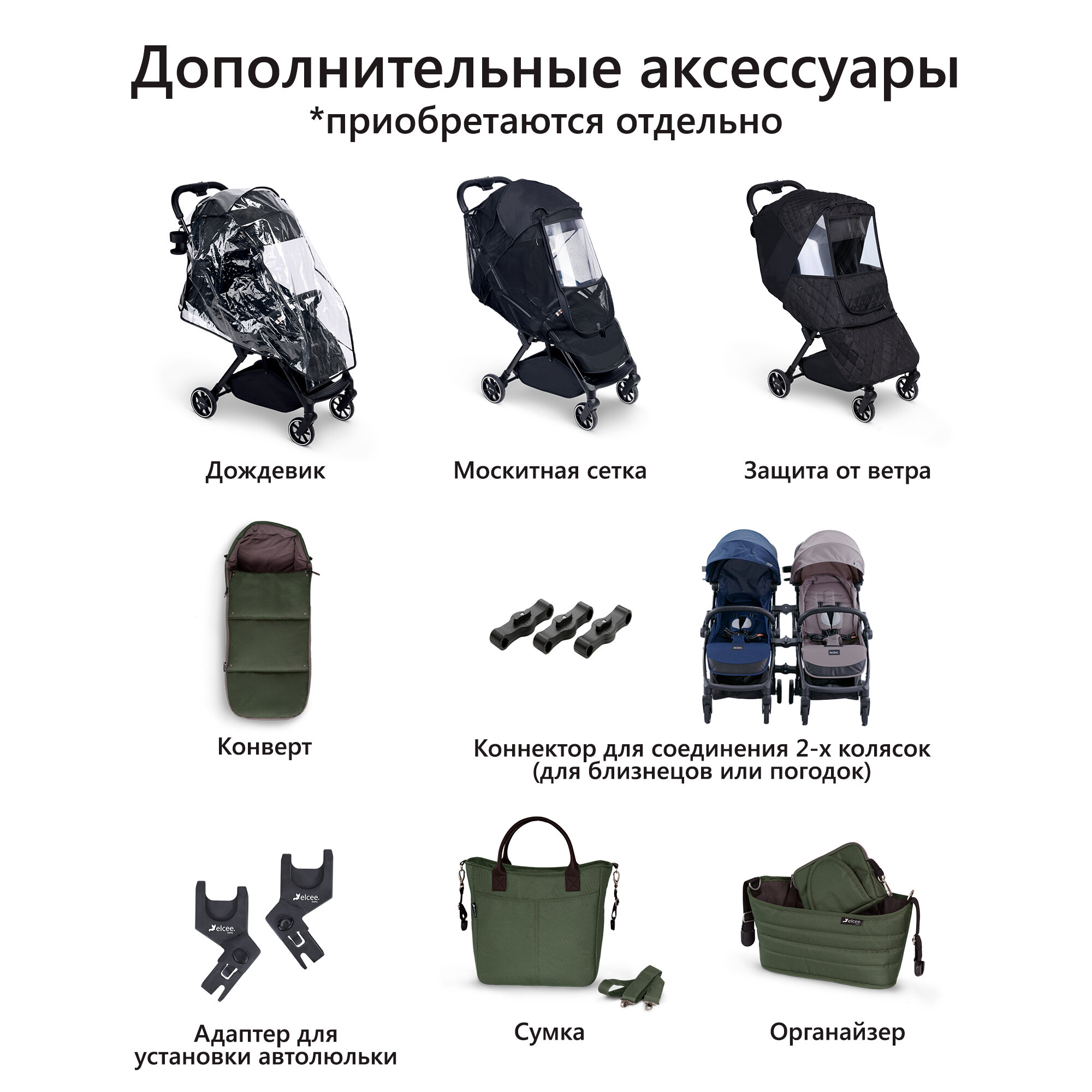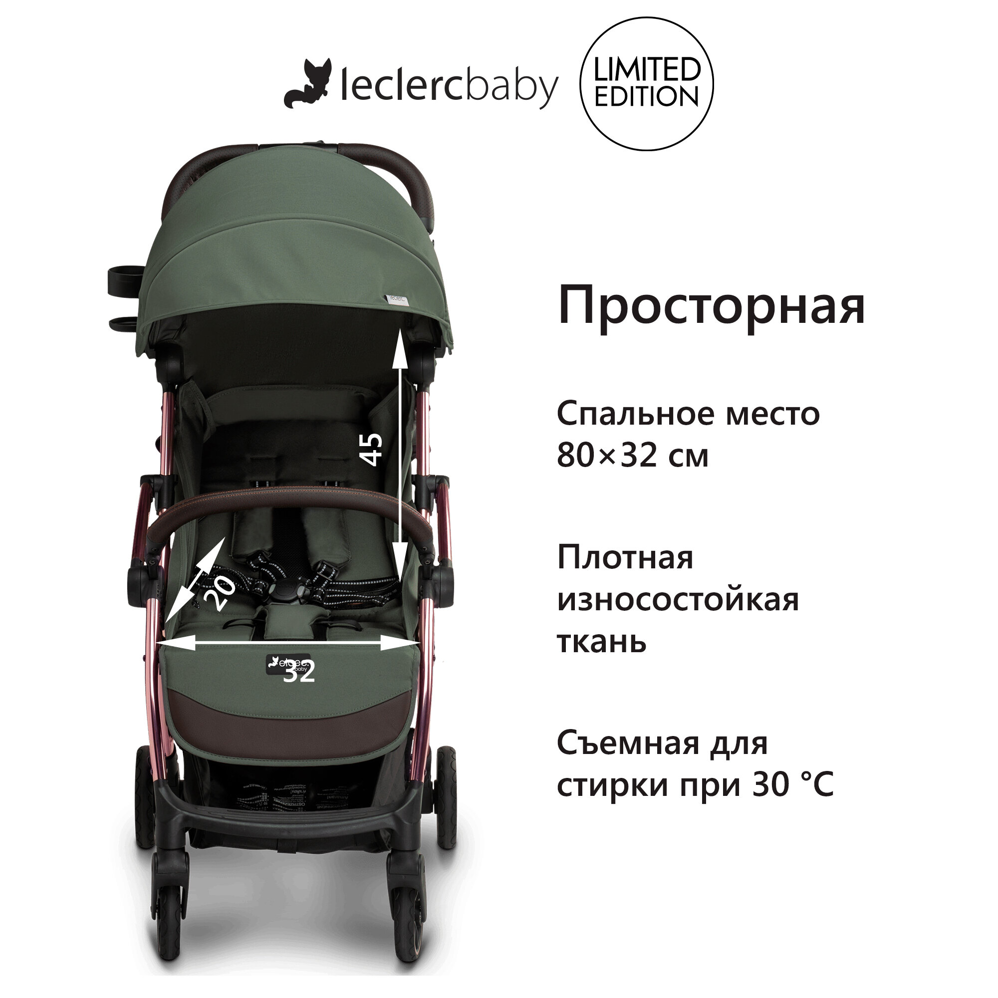 Коляска прогулочная детская Leclerc Influencer Elcee, Army green интересное: