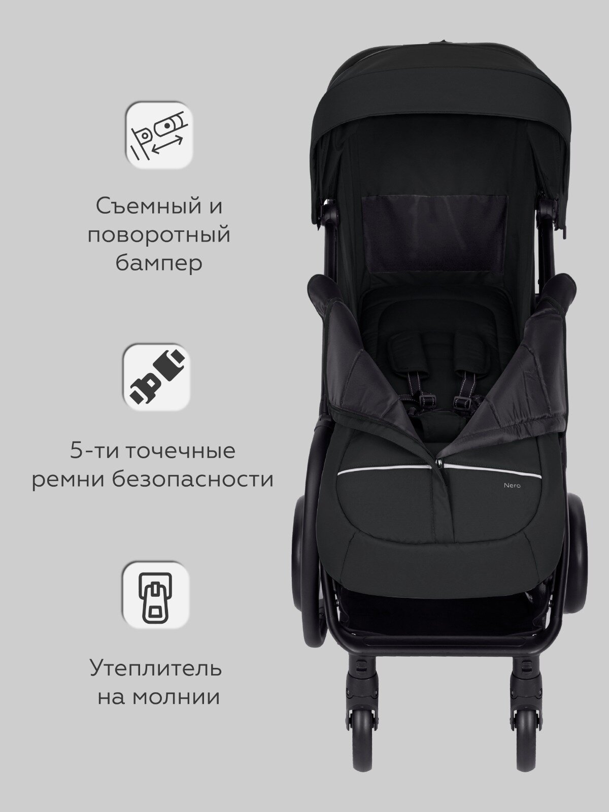 | Аксессуары в комплекте | бампер, капюшон, накидка на ноги, солнцезащитный козырек |