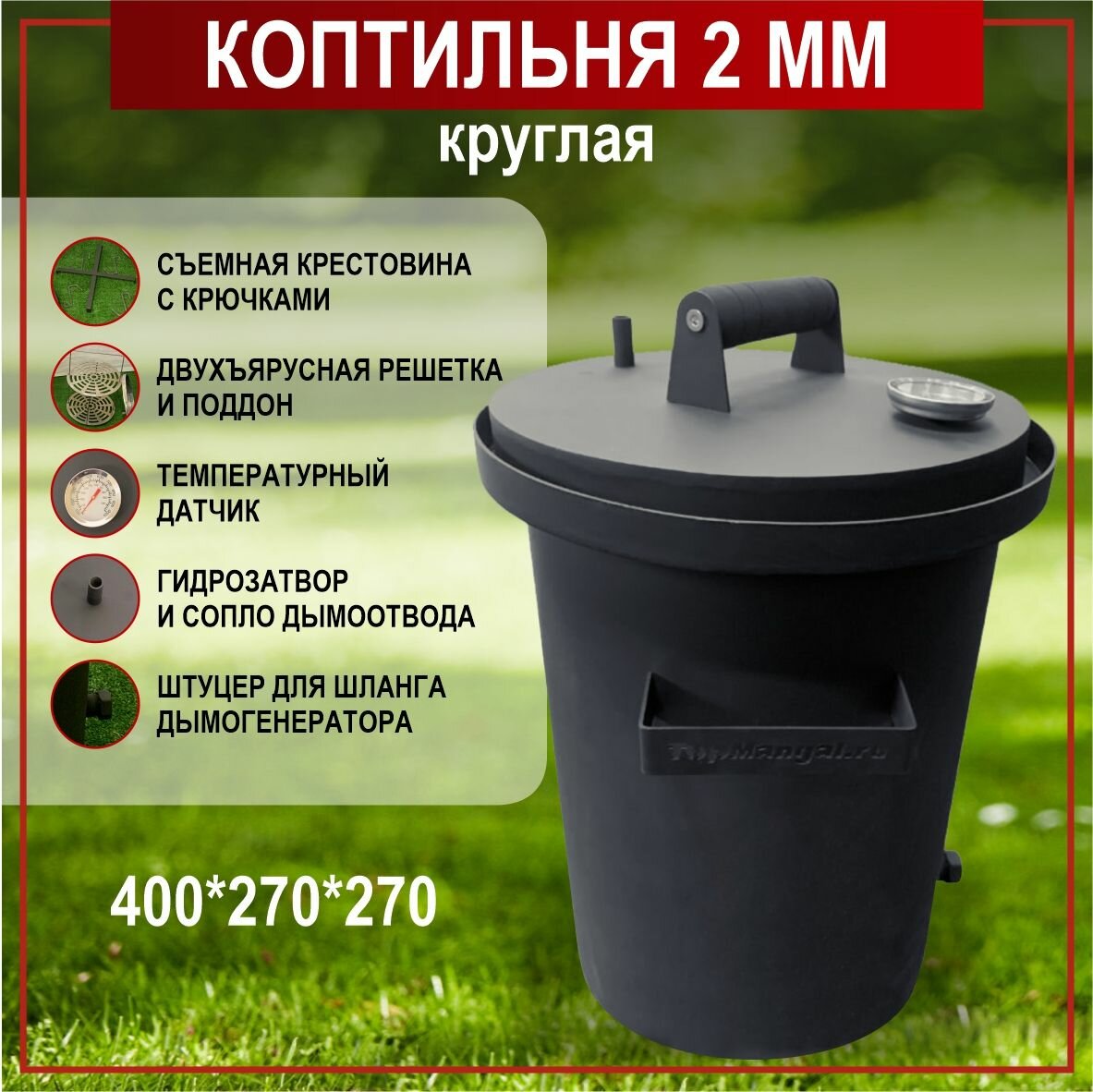Коптильня круглая горячего и холодного копчения с гидрозатвором 2 мм (400*270*270) с датчиком температуры интересное: