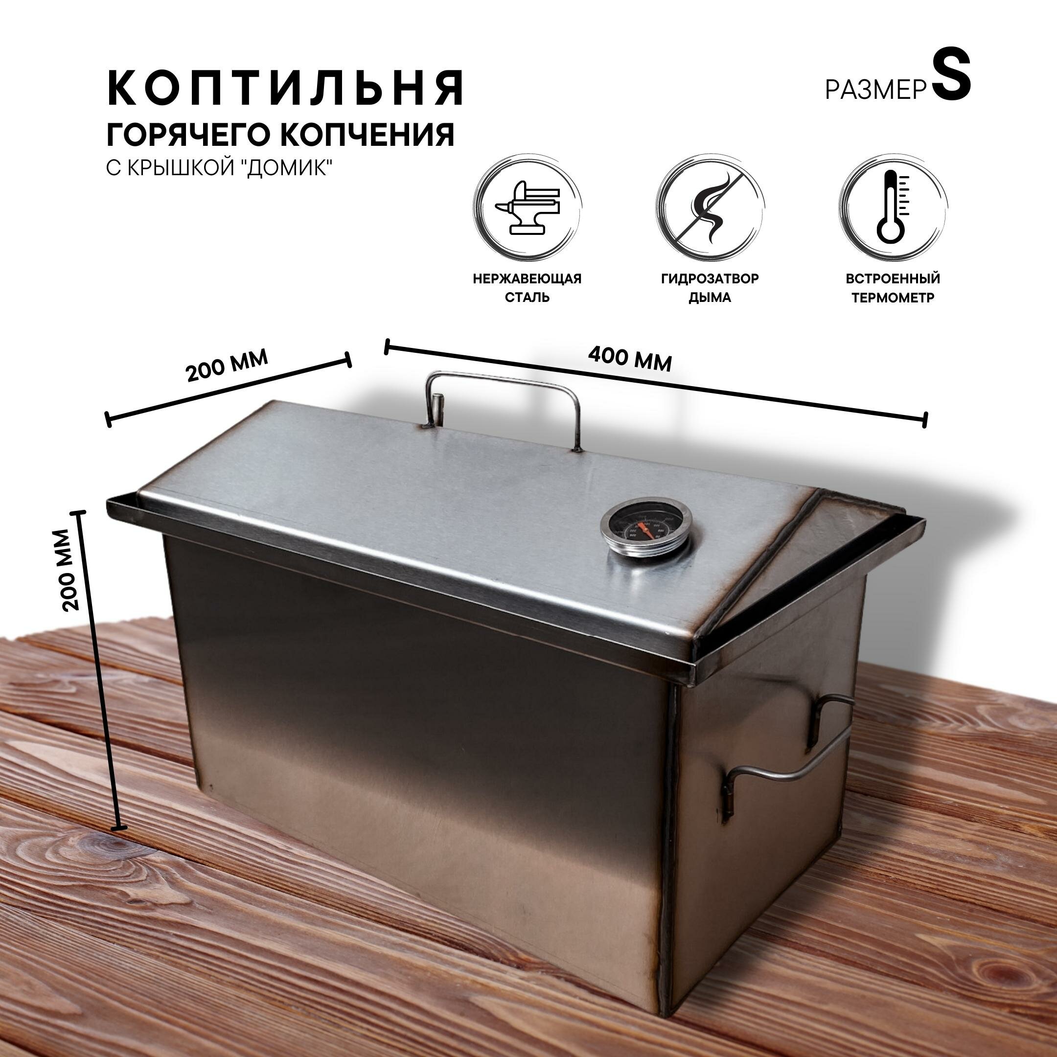 Коптильня горячего копчения Пикник Кавказ с термометром, крыша домик 40х20х20 интересное: