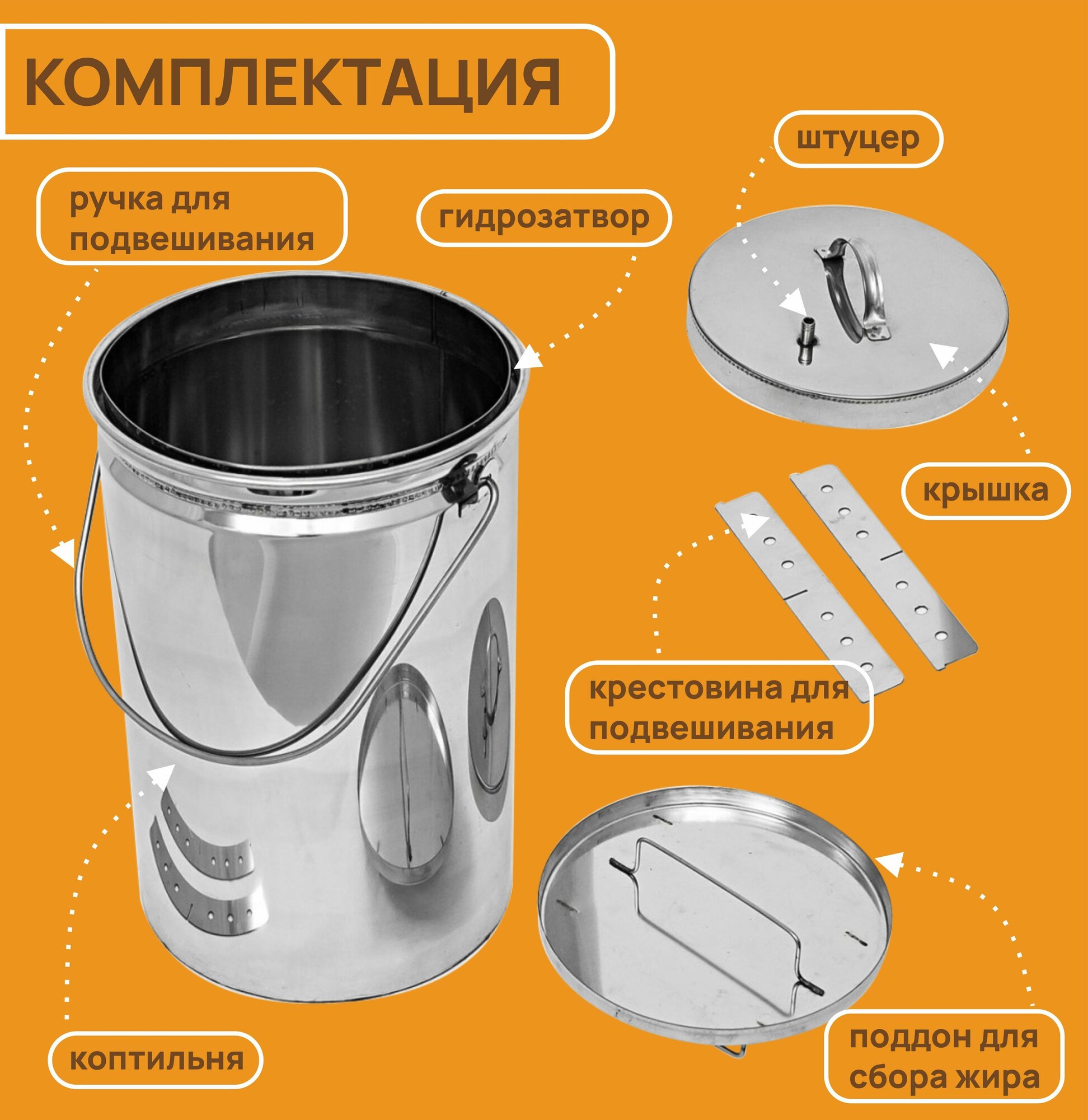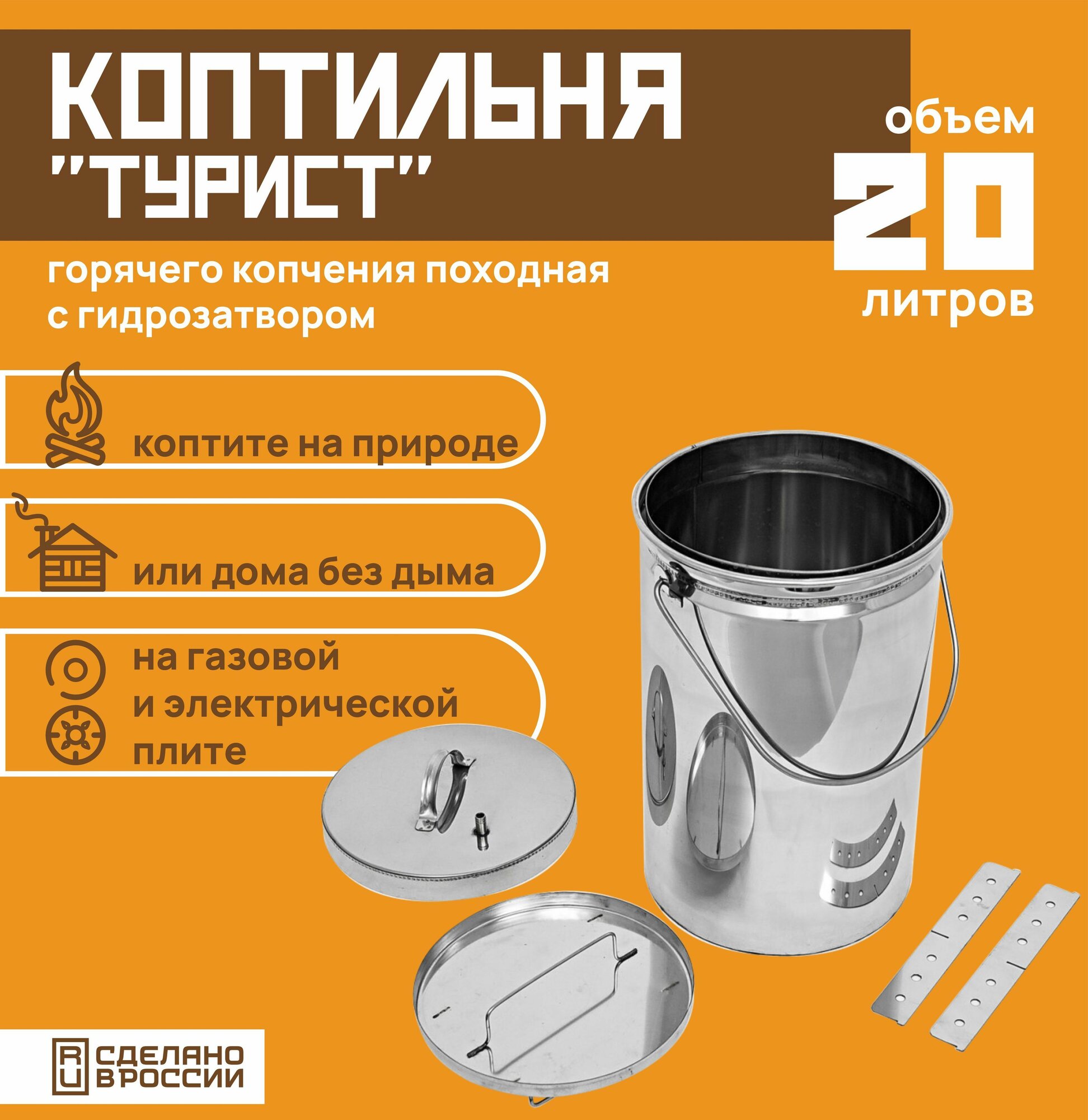 СохранитьКоптильня для горячего копчения Походная вертикальная 20 л. из нержавеющей стали с гидрозатвором интересное: