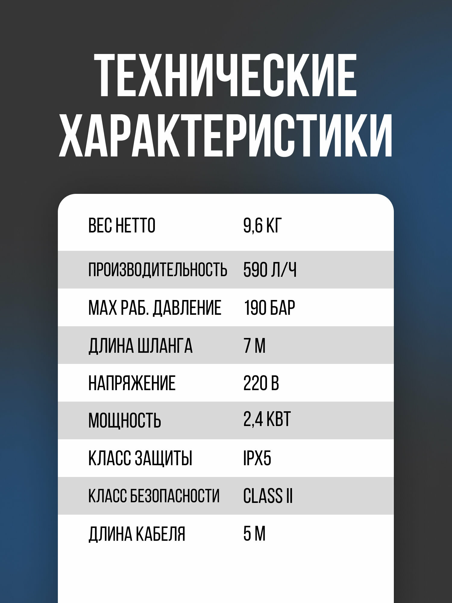 СохранитьМойка высокого давления Hyundai HHW 190-600 (190 бар, 590 л/ч, 2400 Вт, 9.6 кг, шланг 7 м, кабель 5 м) интересное: