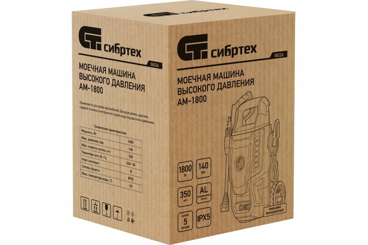 СИБРТЕХ 58226 Мойка СИБРТЕХ 1800Вт 350/ч 140бар аюм помпа AM-1800
