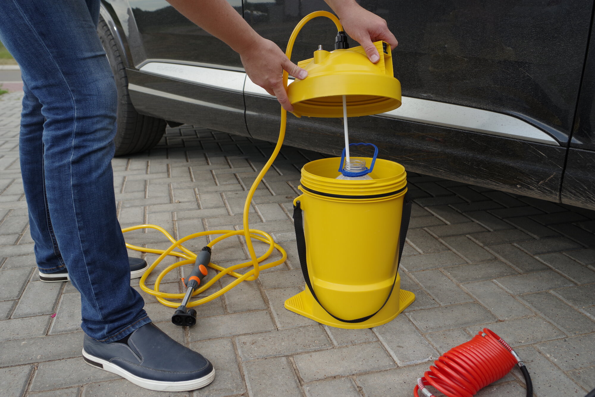 | Подробная комплектация | Бак на 13 литров. Крышка бака с вентилем для подключения насоса. Шланг 1.5 метров. Брандспойт. Форсунка двойная для густой пены и экономная |