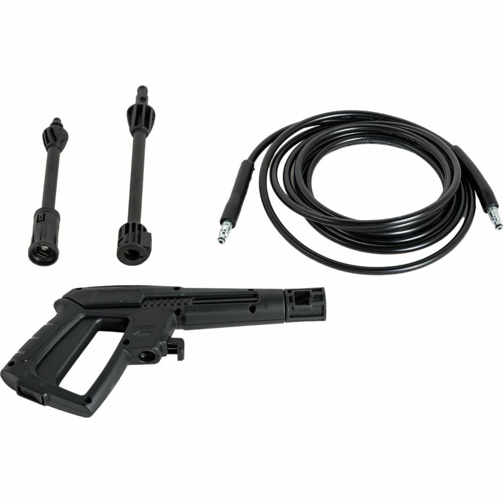 | Подробная комплектация | Мойка высокого давления Шнур питания Шланг высокого давления Переключатель пуска/останова Регулируемая насадка Удлинитель Пистолет Рукоятка Крючок для шнура питания Крючок для пистолета и принадлежностей Впускное отверстие для воды с фильтром Чистящий штифт Колеса Декоративная пластина |