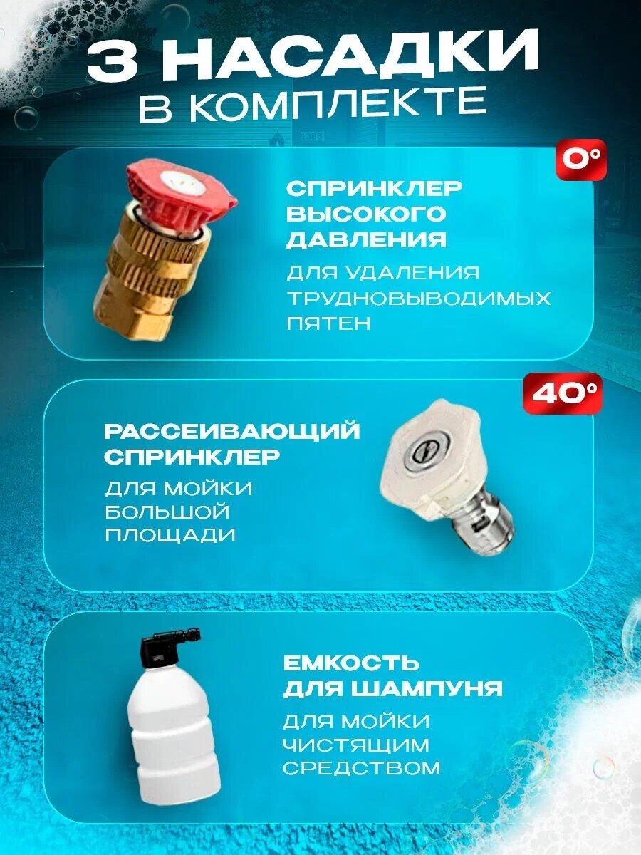 | Насадки | веерная насадка / пеногенератор / поворотная насадка / стандартная насадка / точечная насадка |